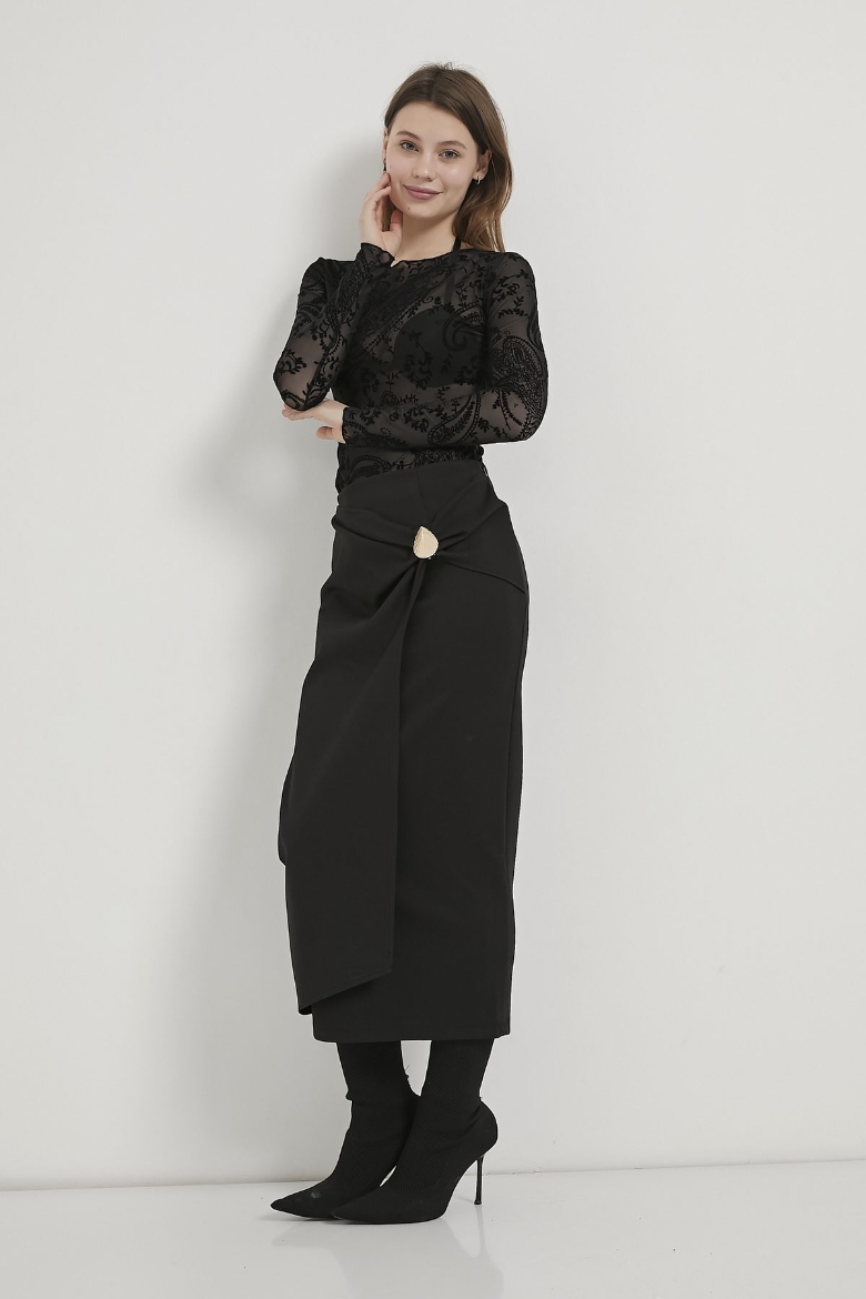 ARMALIFE 1101 AKSESUAR DETAYLI ÖRME MİDİ KADIN ETEK