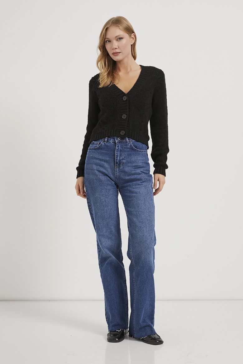 ARMALIFE 1101 ÖRGÜ DETAYLI DÜĞMELİ TRİKO KADIN HIRKA