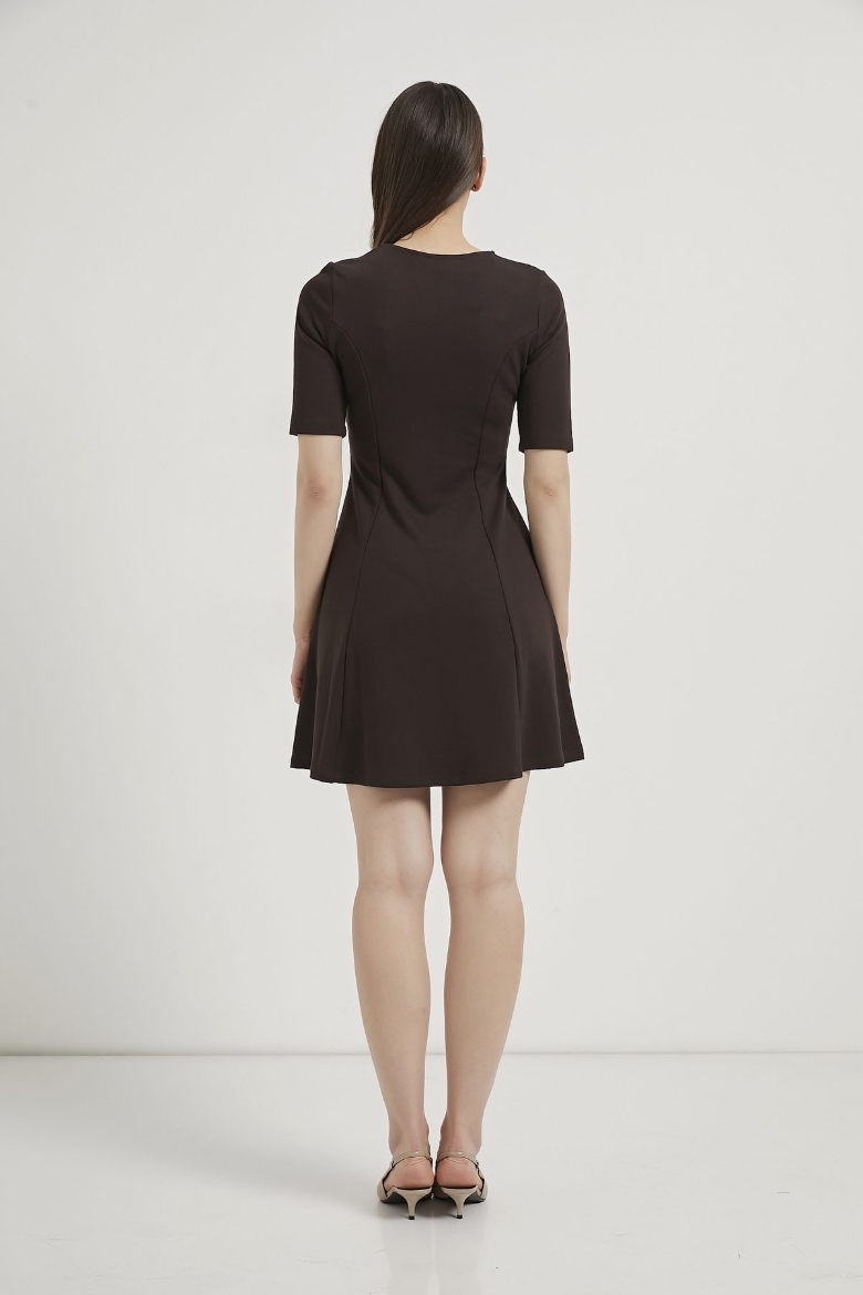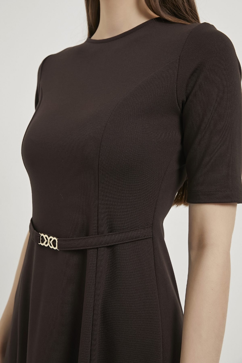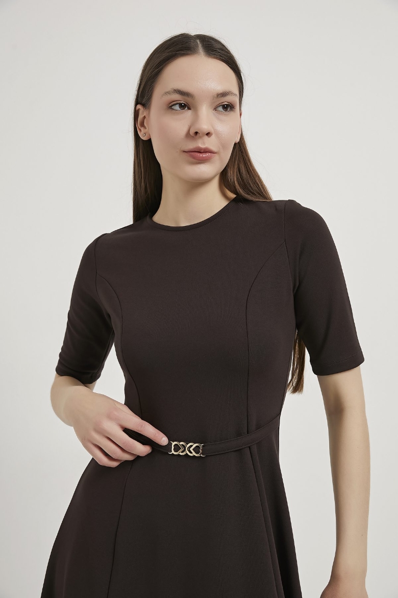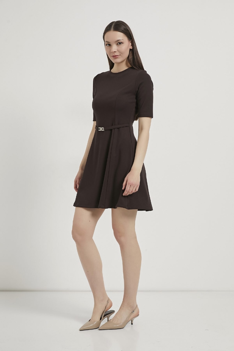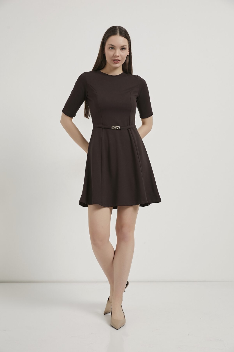 ARMALIFE 1102 BELİ KEMERLİ AKSESUAR DETAYLI BİS YAKA KISA KOL MİNİ KADIN ELBİSE