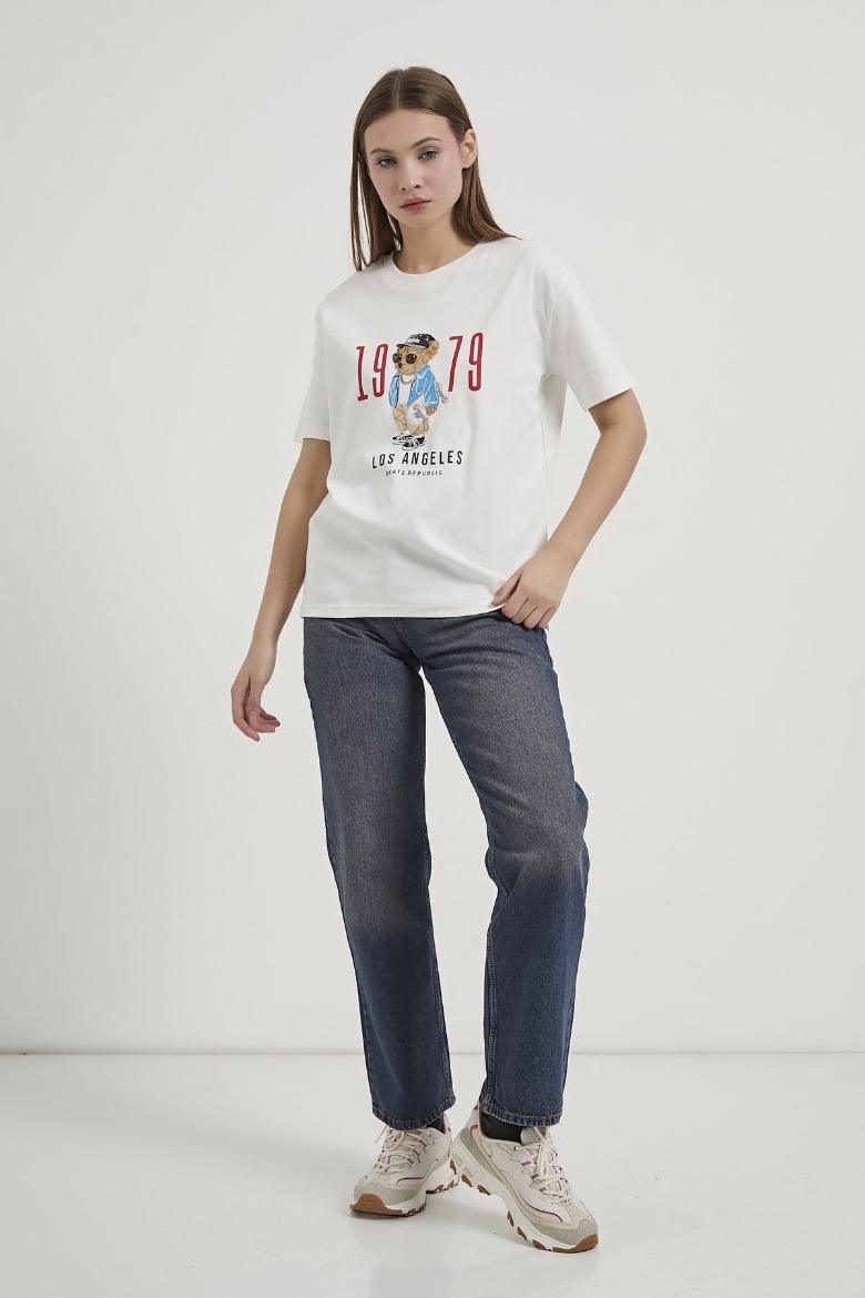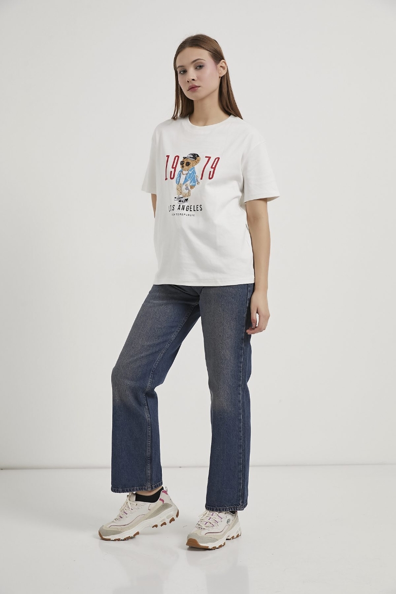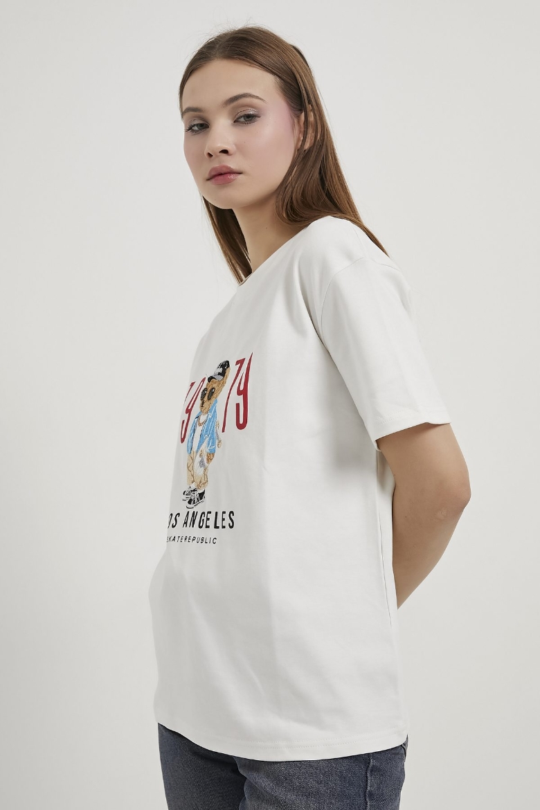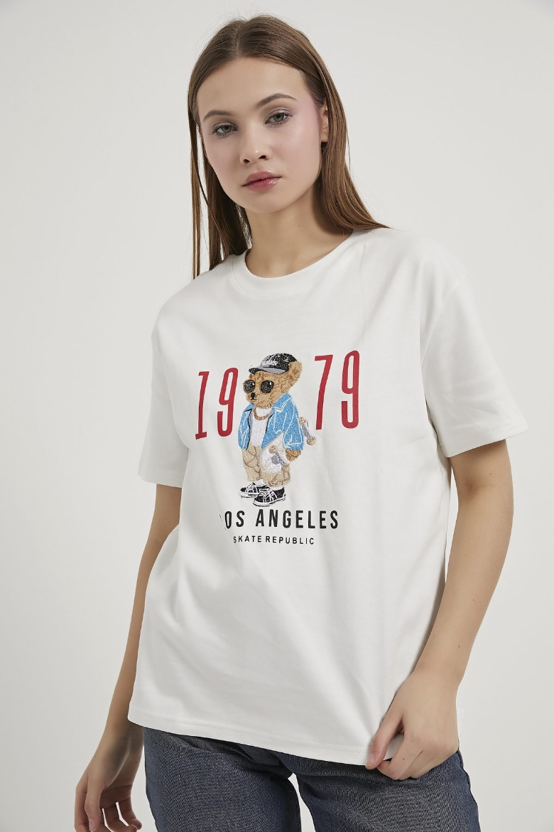 ARMALIFE 11064 AYICIK NAKIŞLI BASKI DETAY KADIN T-SHIRT