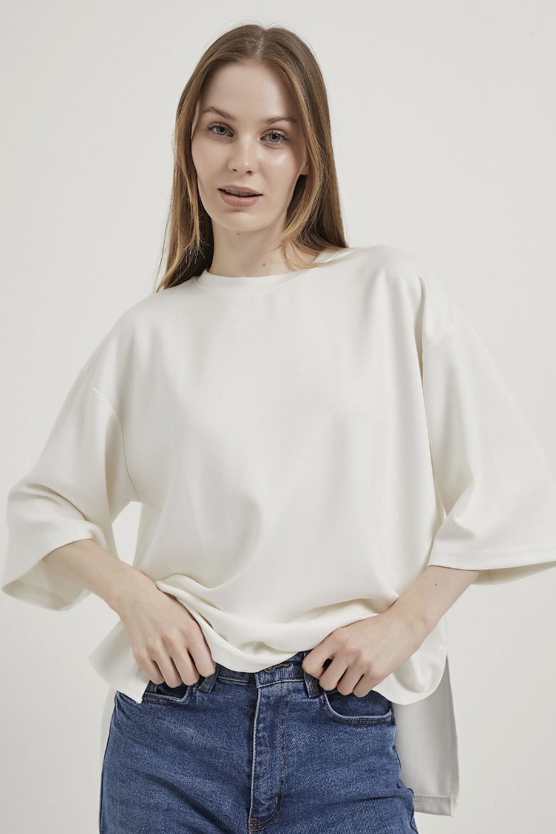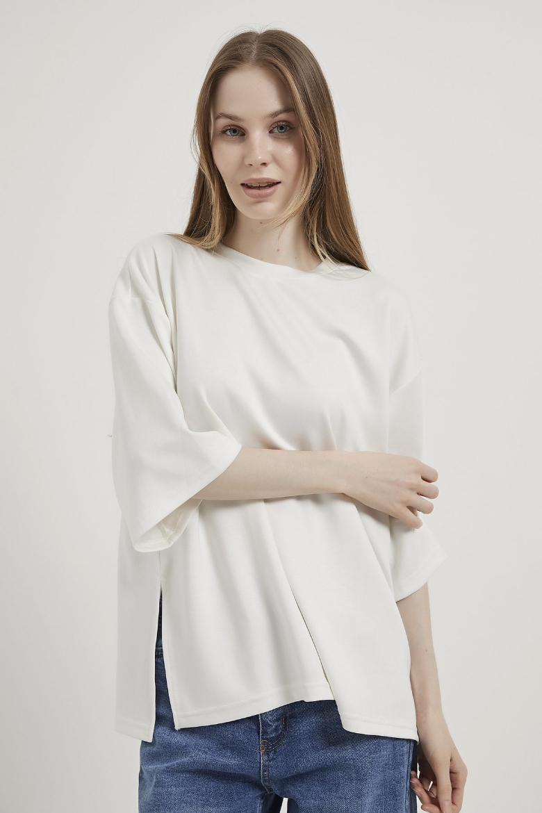 ARMALIFE 11066 YANI YIRTMAÇLI BİS YAKA SALAŞ KADIN T-SHIRT