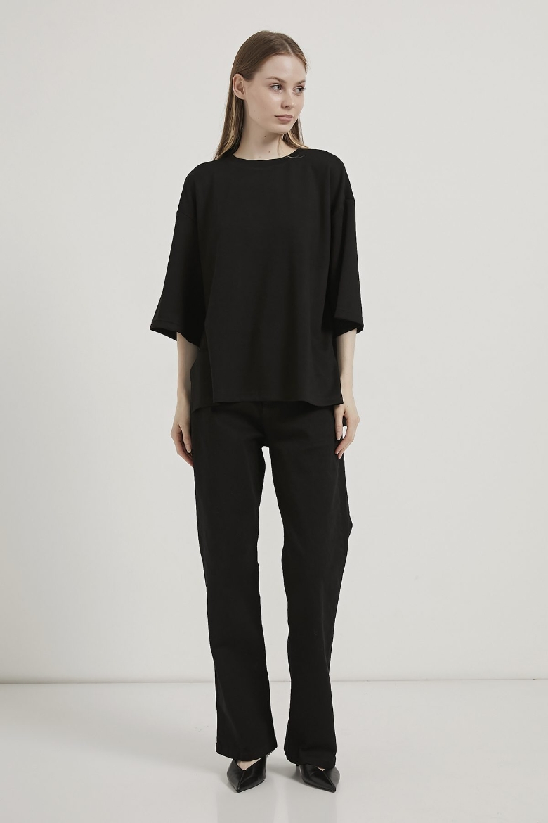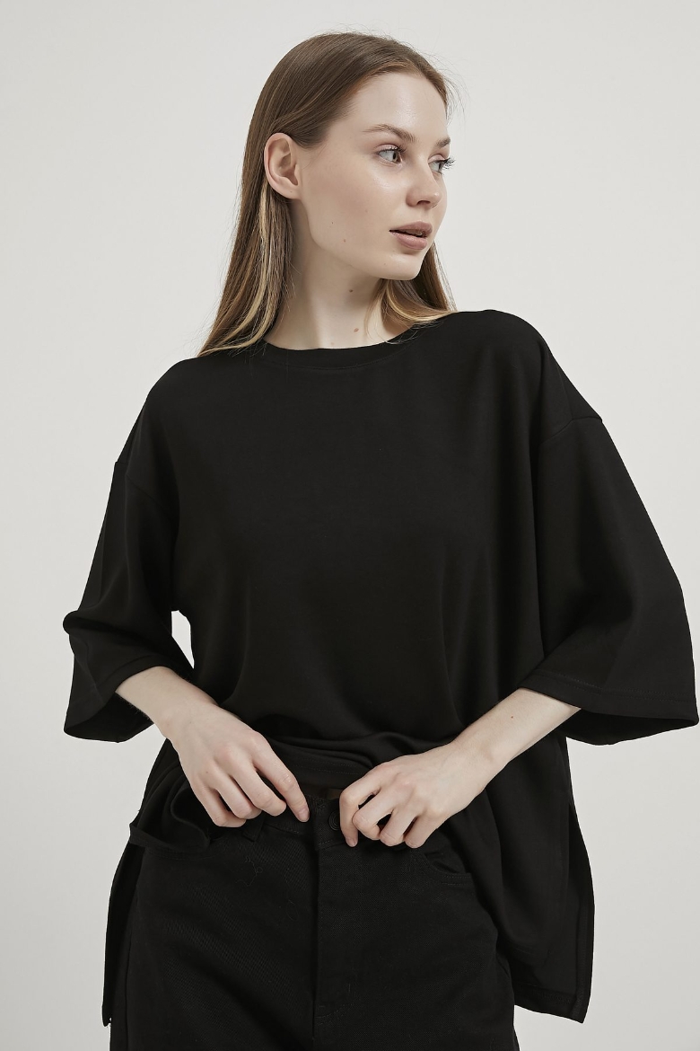 ARMALIFE 11066 YANI YIRTMAÇLI BİS YAKA SALAŞ KADIN T-SHIRT