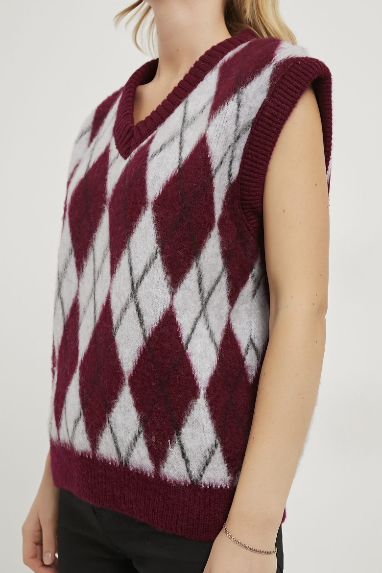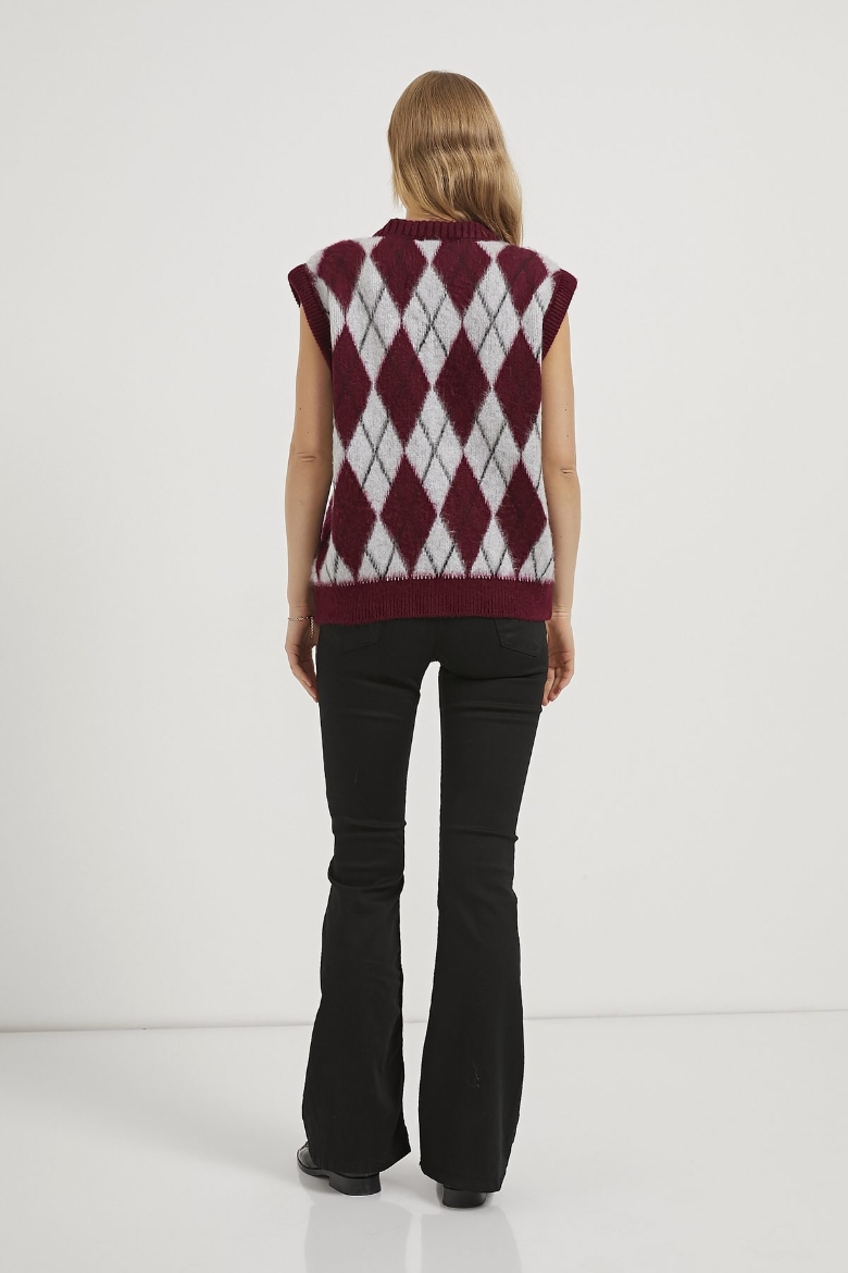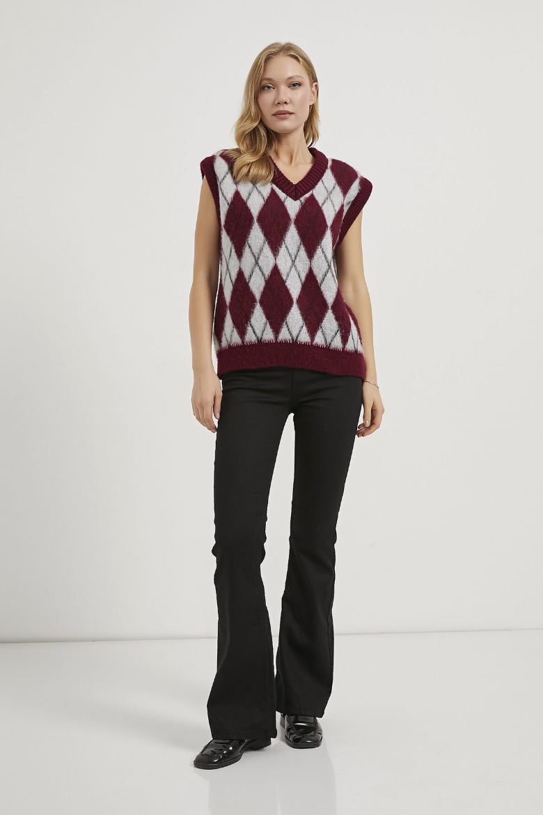 ARMALIFE 1109 BAKLAVA DESENLİ V YAKA KADIN SÜVETER