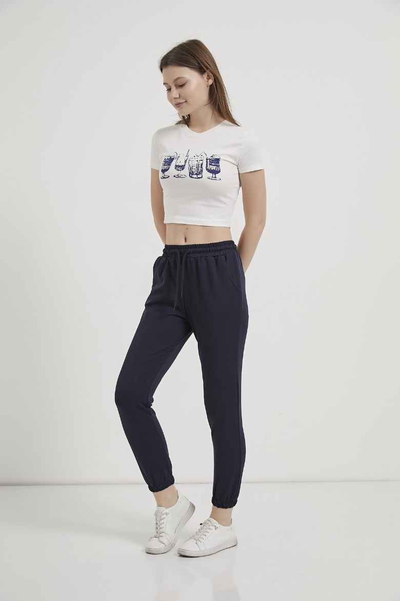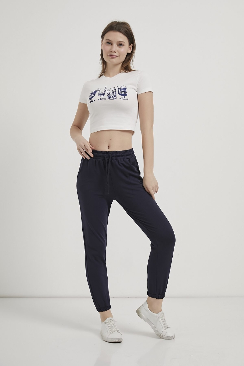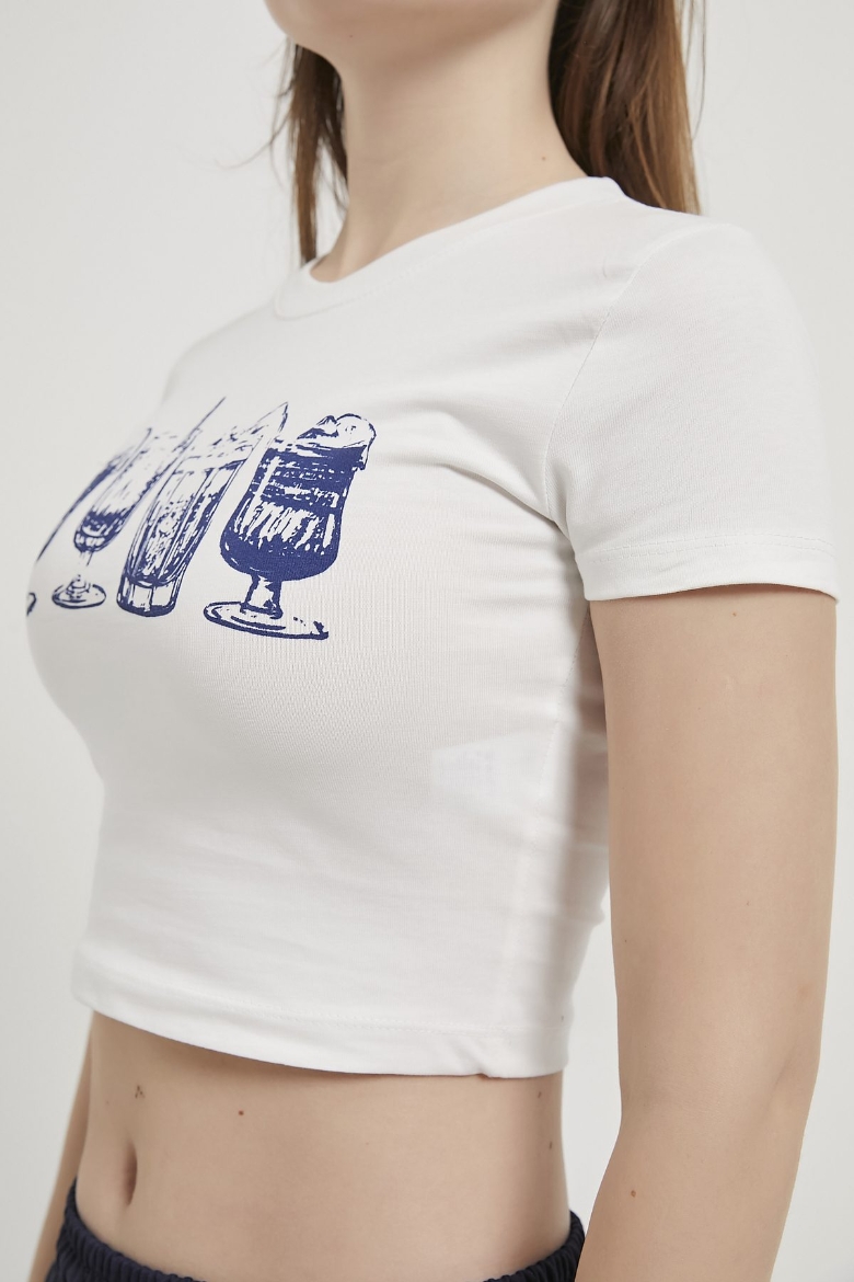 ARMALIFE 11114 BARDAK BASKILI CROP KADIN T-SHIRT