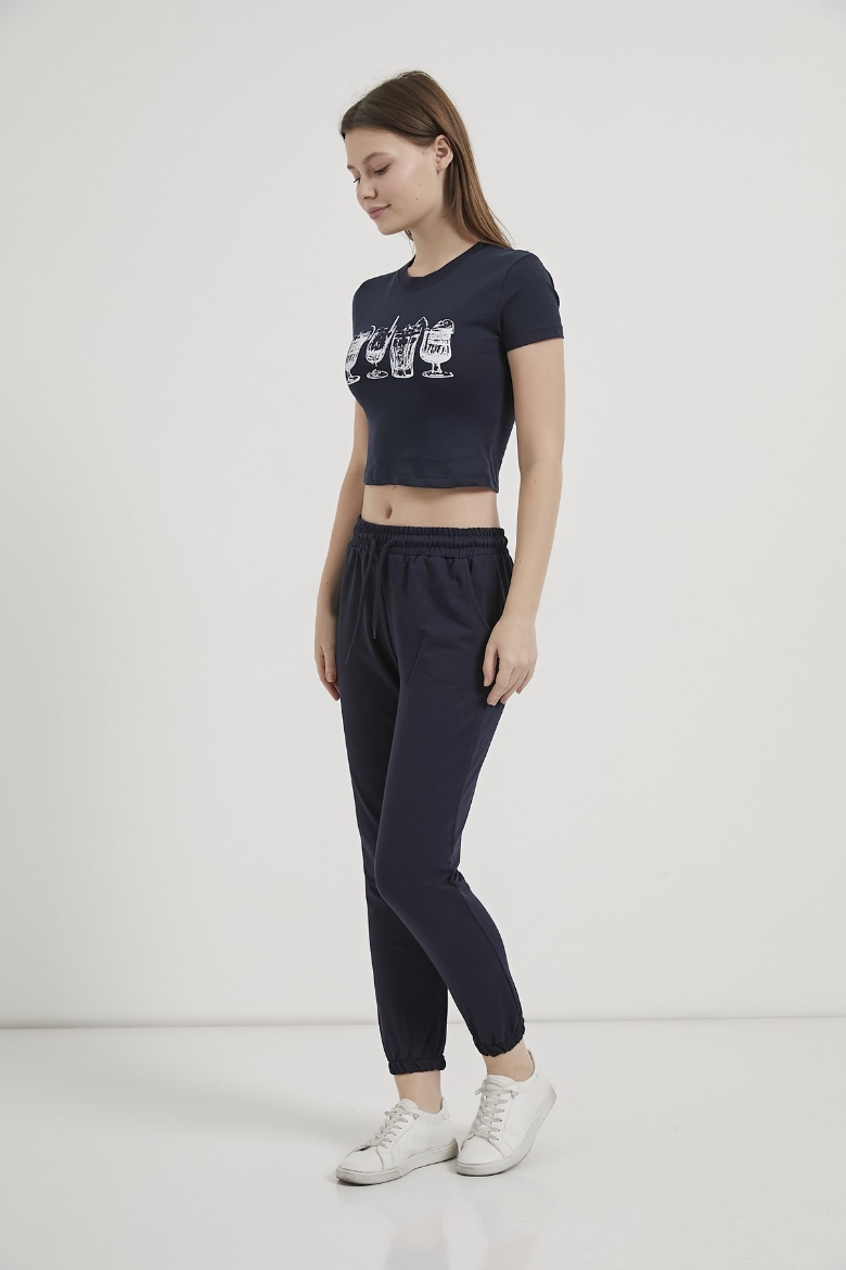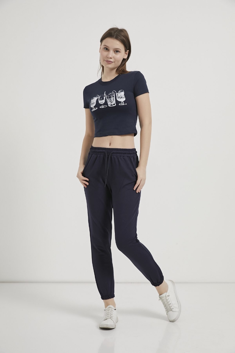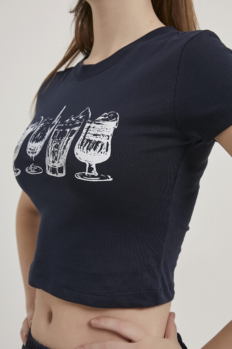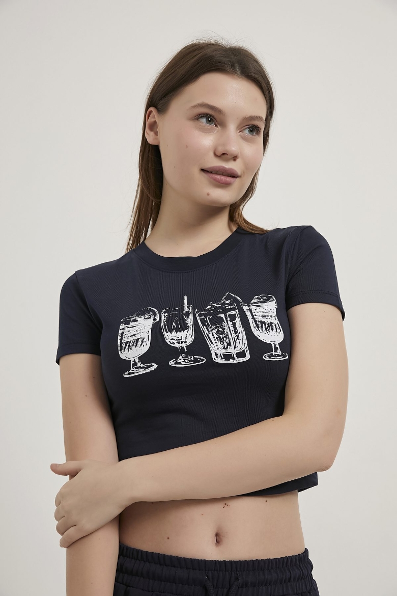 ARMALIFE 11114 BARDAK BASKILI CROP KADIN T-SHIRT