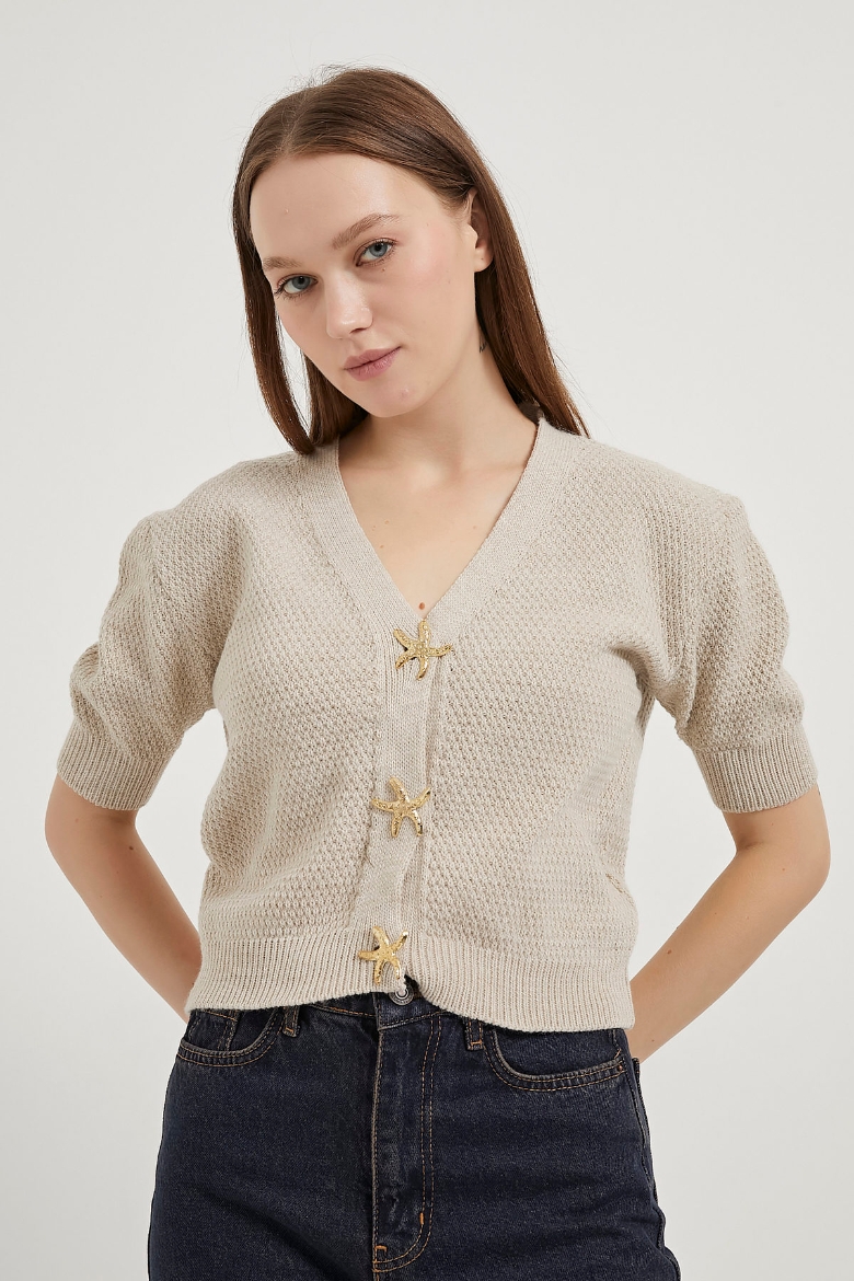 ARMALIFE 1114 YILDIZ DÜĞMELİ KISA KOL TRİKO KADIN HIRKA