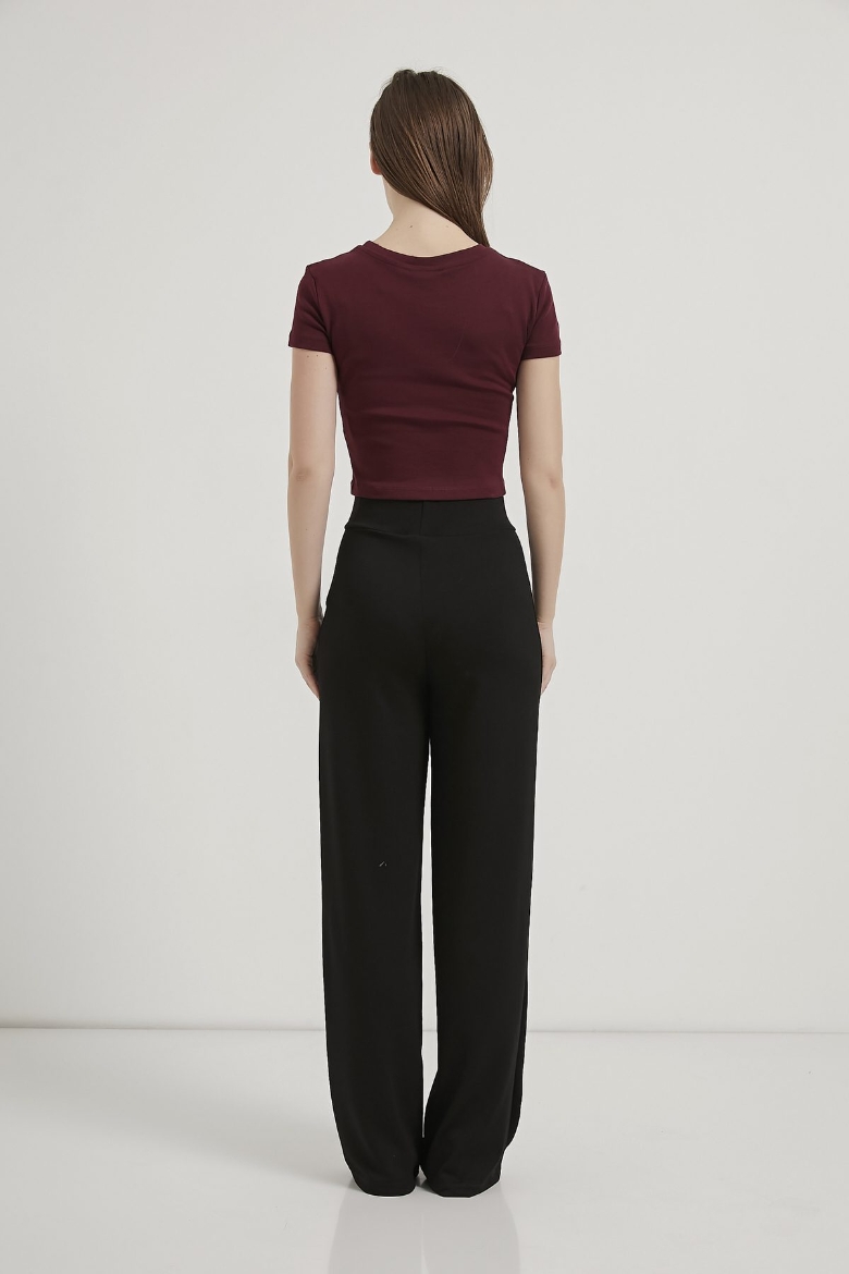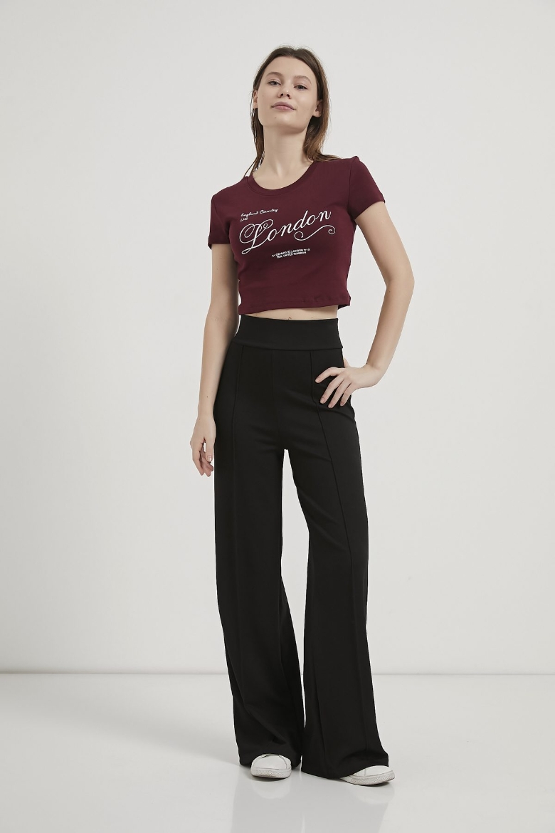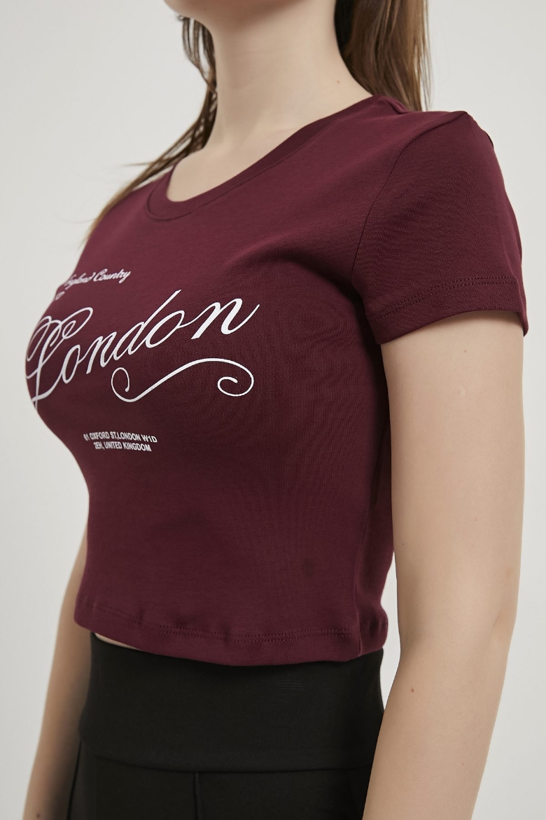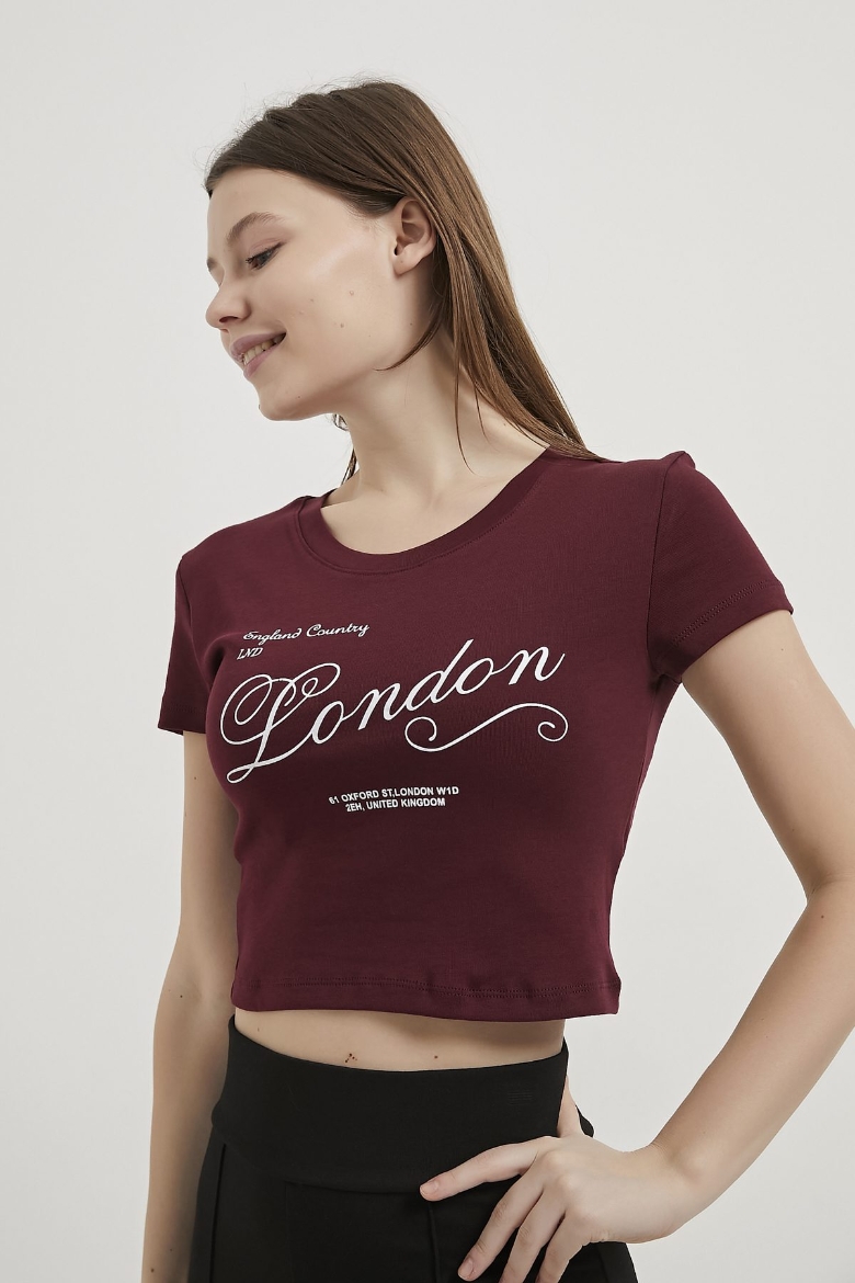 ARMALIFE 11143 YAZI BASKILI BİS YAKA CROP KADIN T-SHIRT