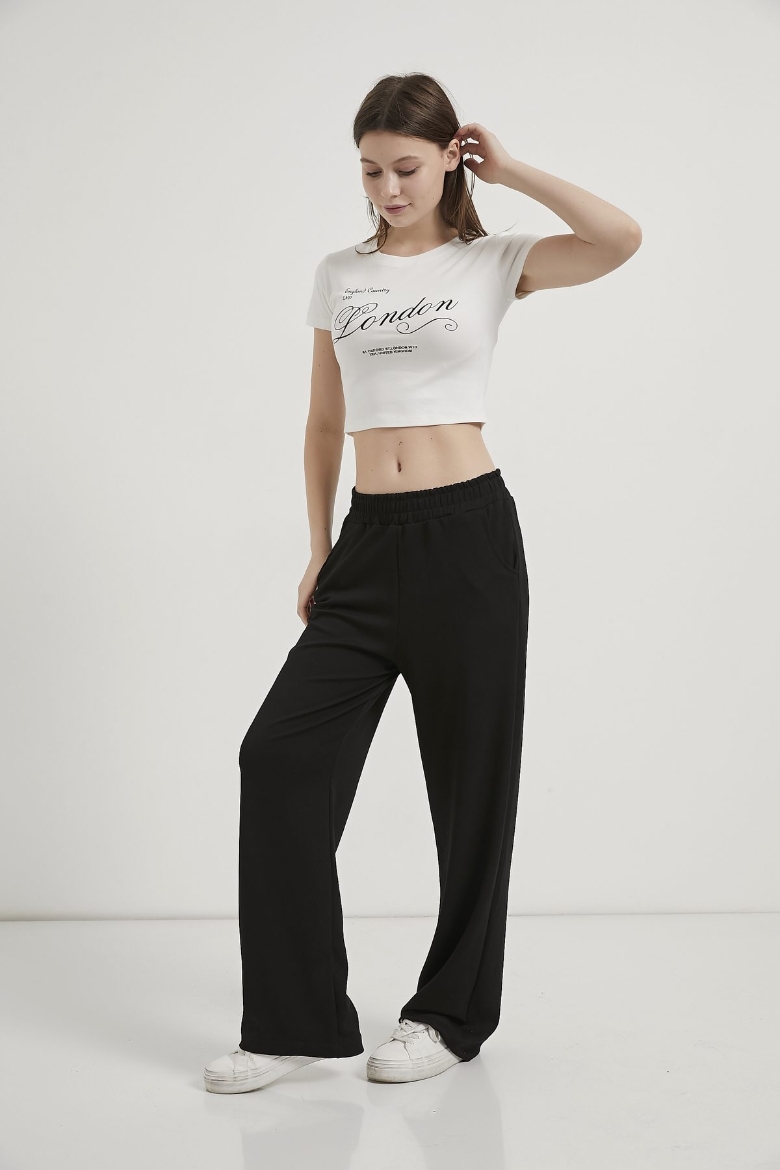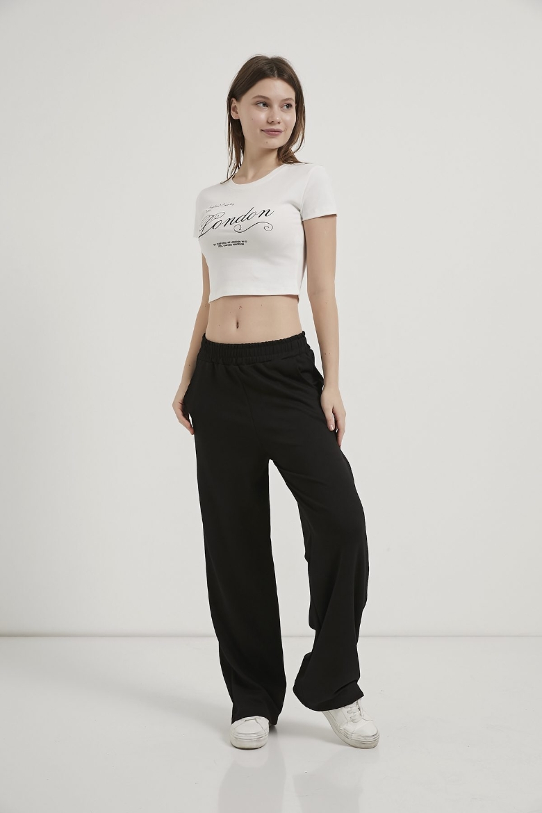 ARMALIFE 11143 YAZI BASKILI BİS YAKA CROP KADIN T-SHIRT