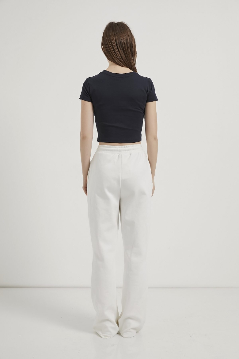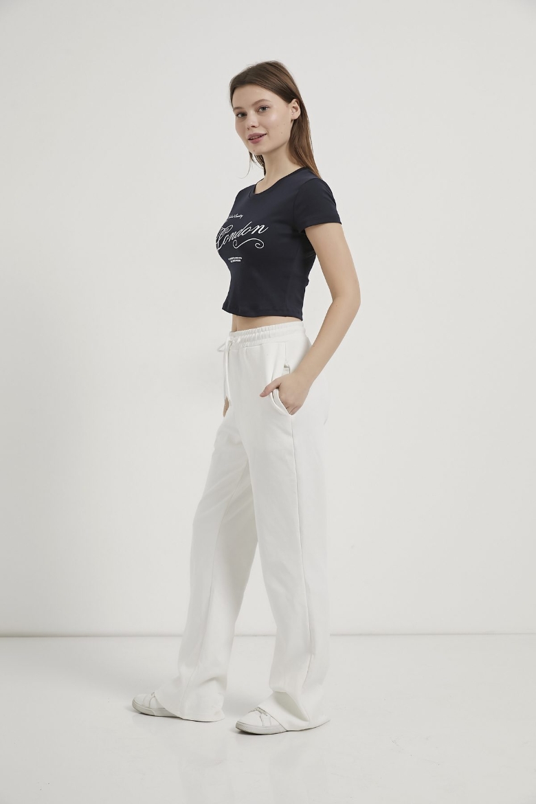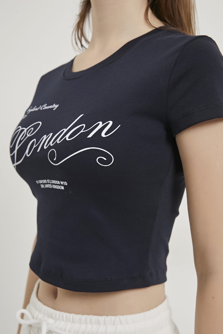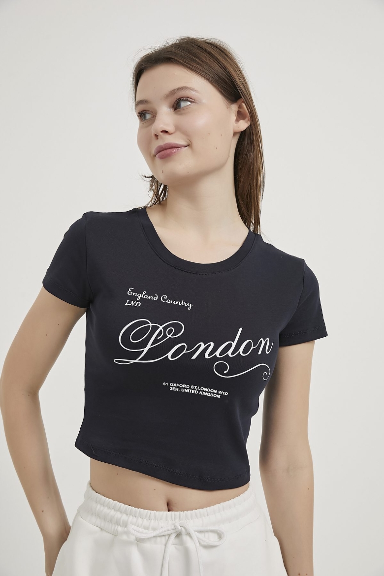 ARMALIFE 11143 YAZI BASKILI BİS YAKA CROP KADIN T-SHIRT