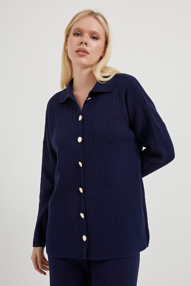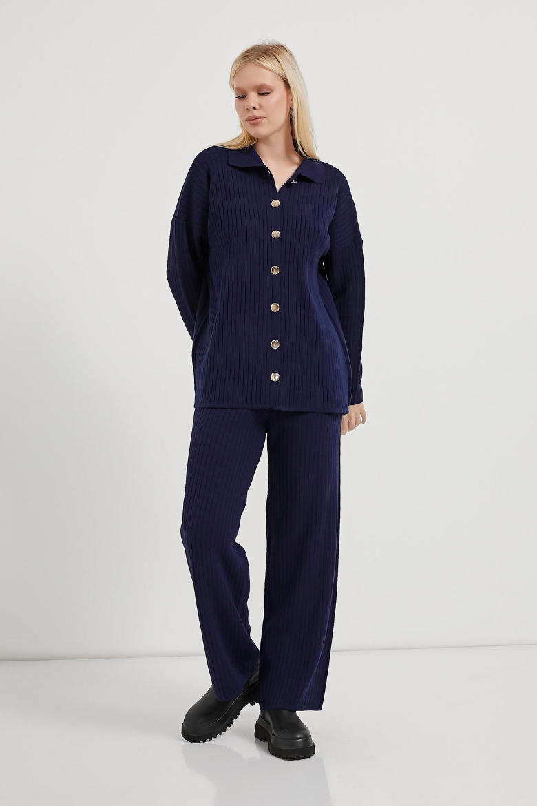 ARMALIFE 1115 YAKALI DÜĞMELİ BLUZ-PANTOLON KADIN TAKIM