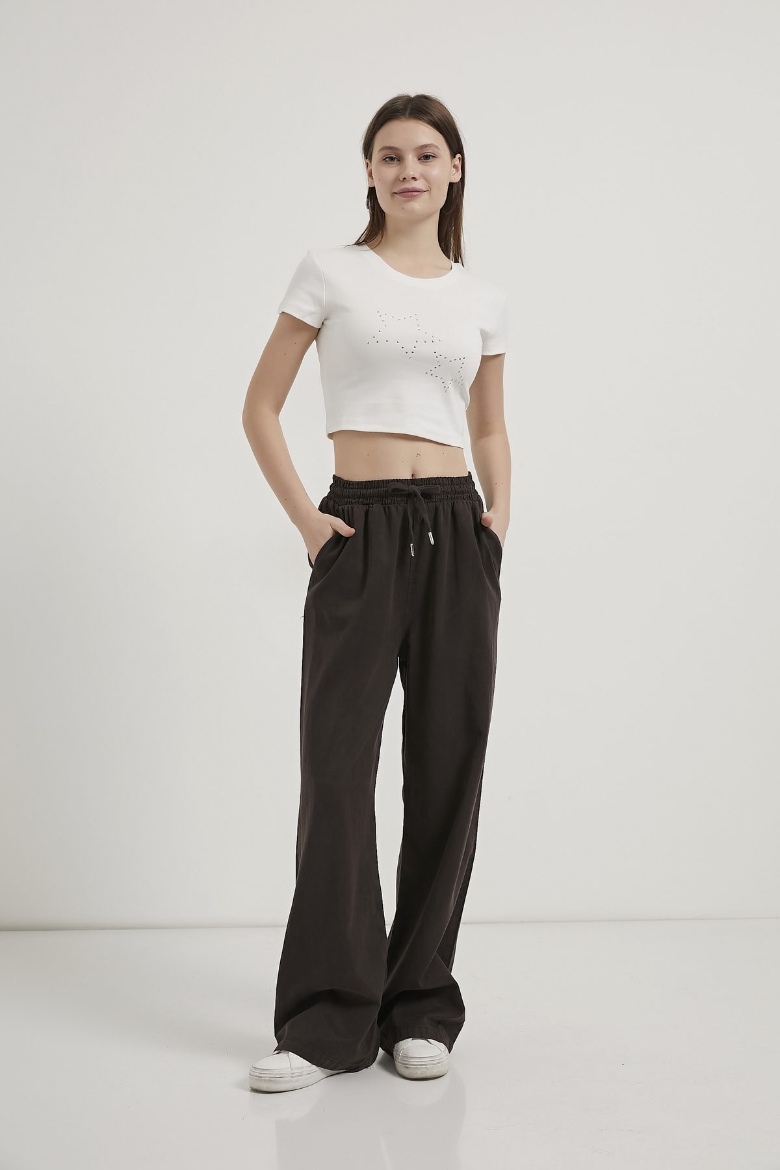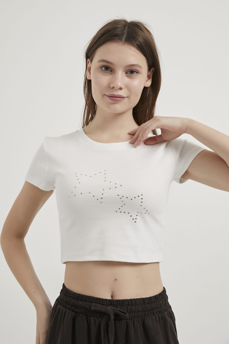 ARMALIFE 11160 TROK YILDIZLI BİS YAKA CROP KADIN T-SHIRT