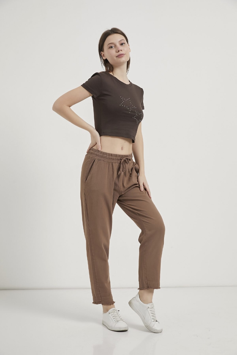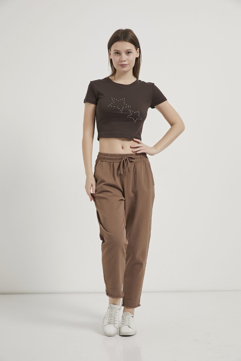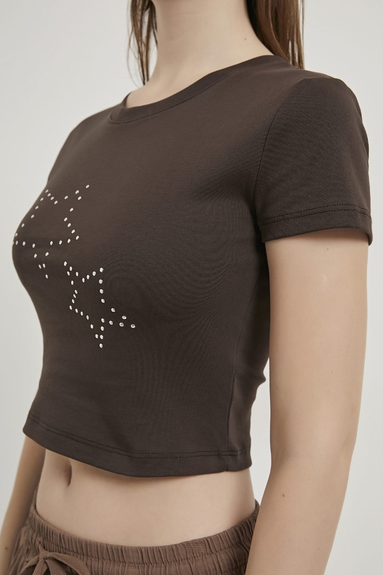 ARMALIFE 11160 TROK YILDIZLI BİS YAKA CROP KADIN T-SHIRT