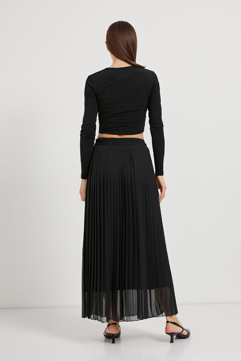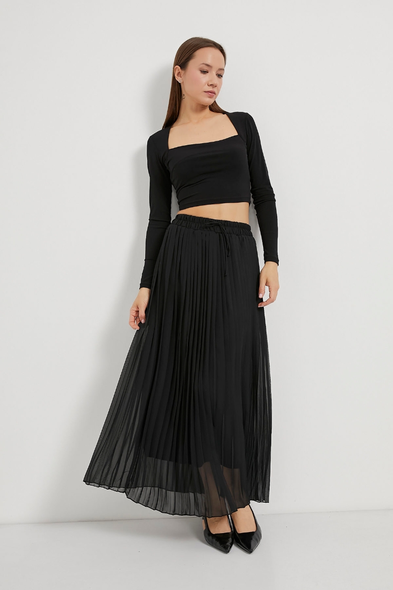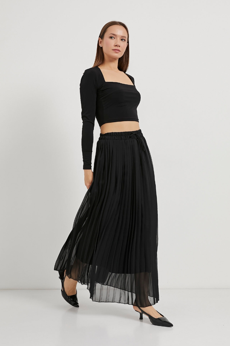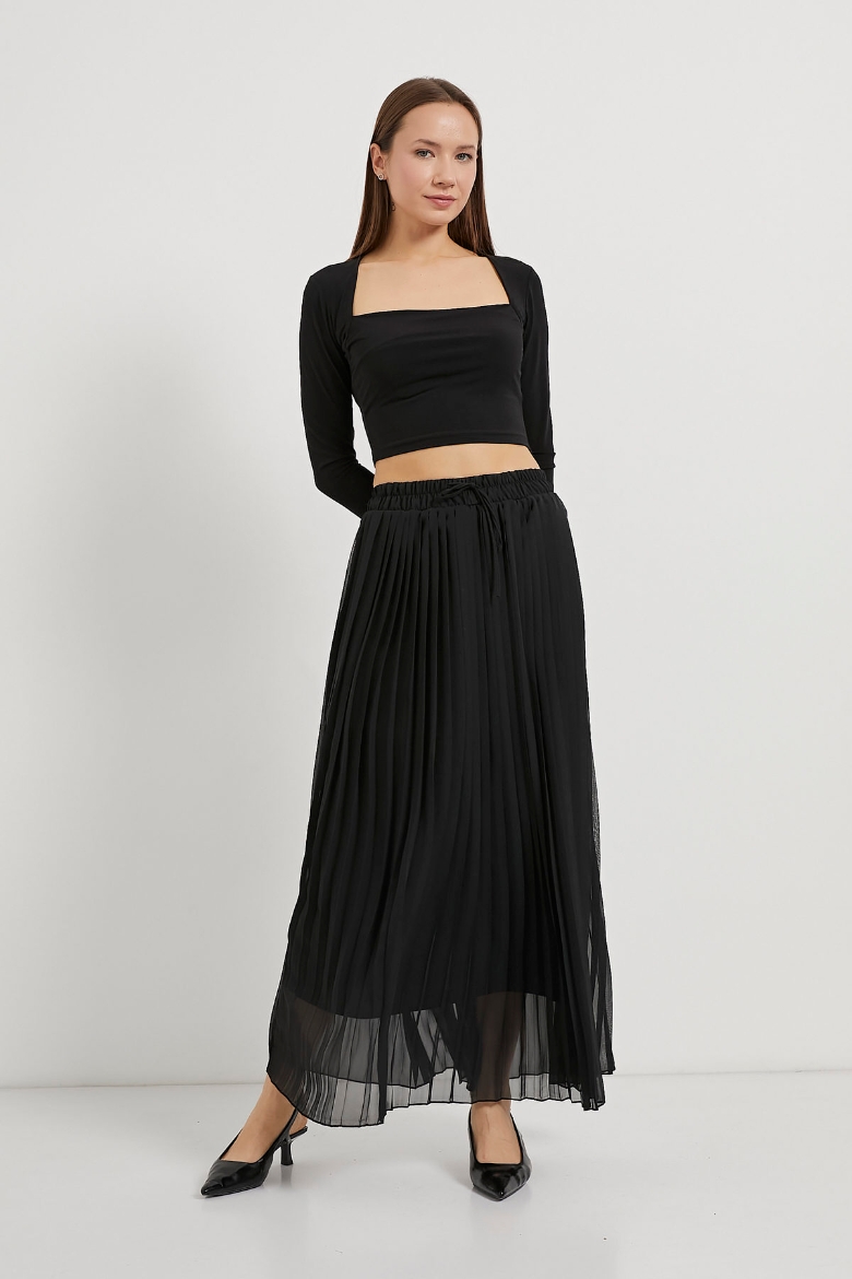 ARMALIFE 1117 BELİ LASTİKLİ PİLİSELİ ASTARLI MAXI BOY ŞİFON KADIN ETEK