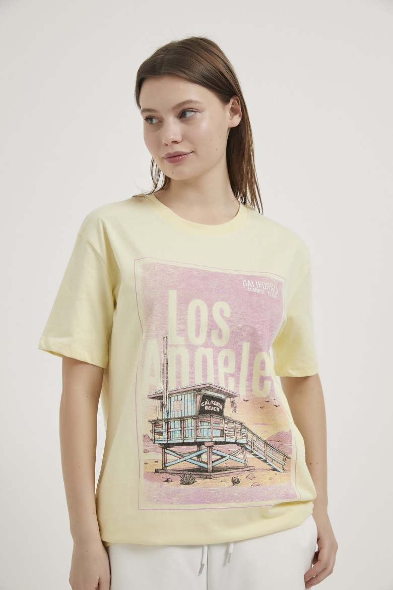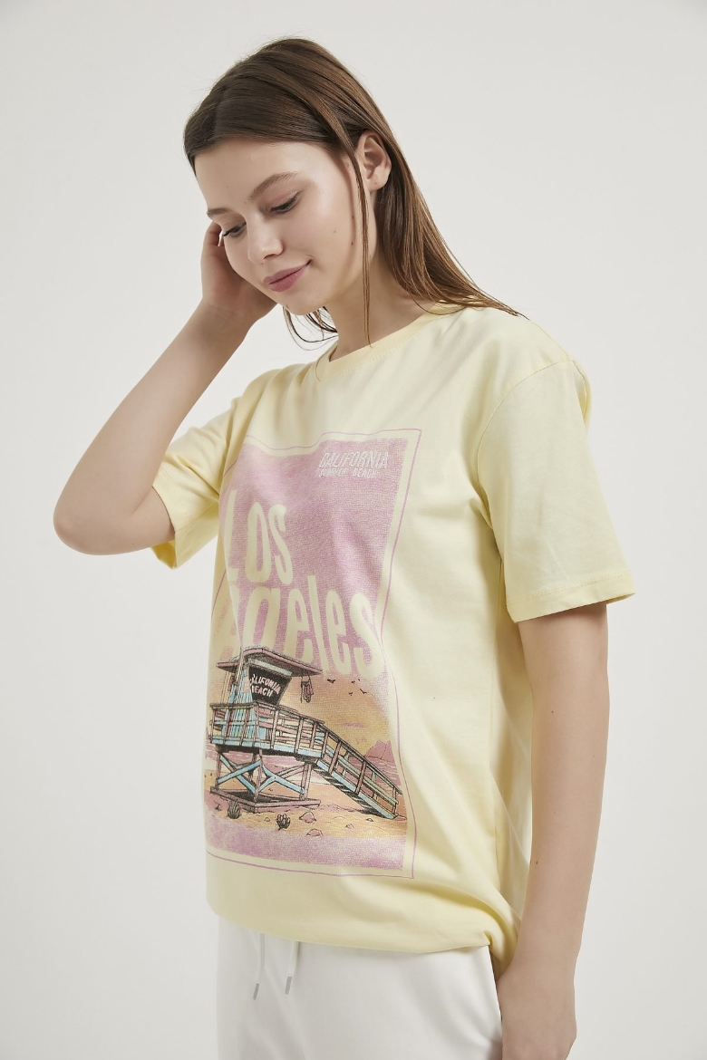 ARMALIFE 11300 BASKILI NAKIŞ DETAY BİS YAKA KADIN T-SHIRT