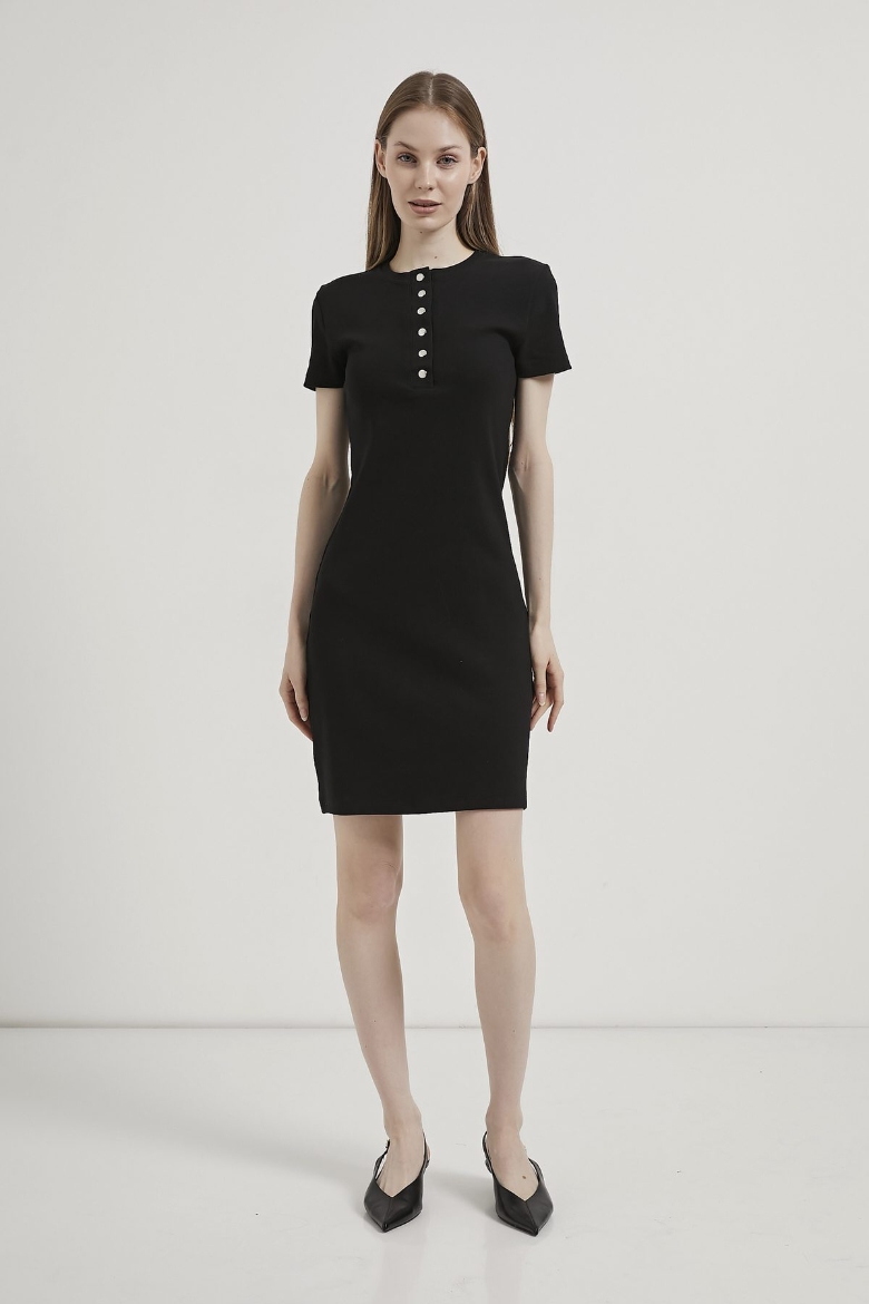 ARMALIFE 11309 ÇITÇIT DETAY KISA KOL KADIN ELBİSE