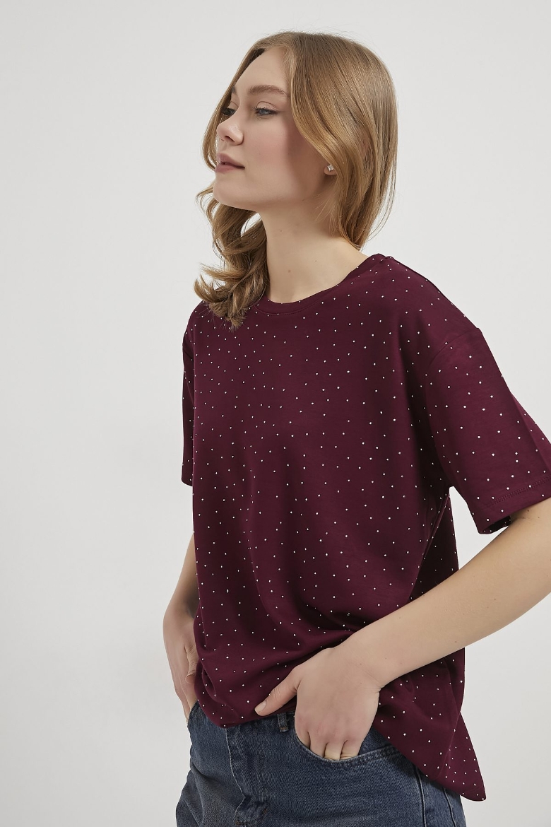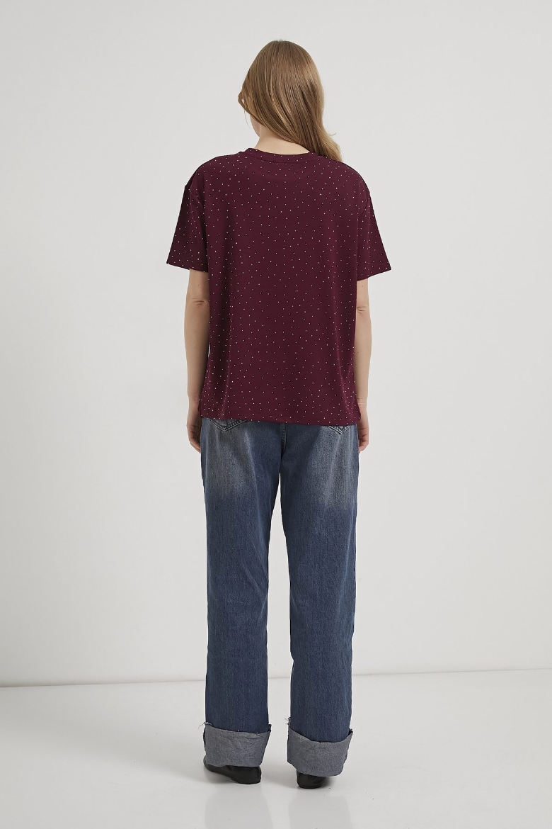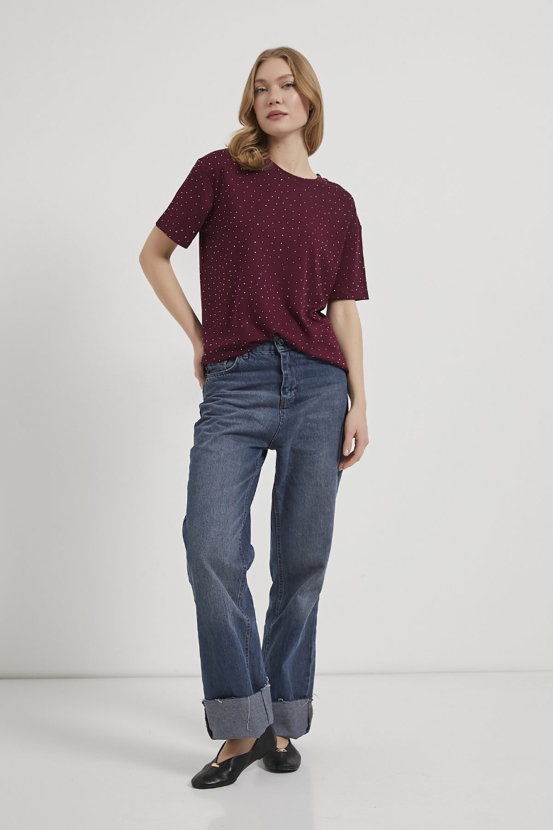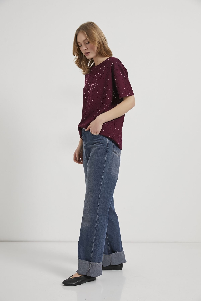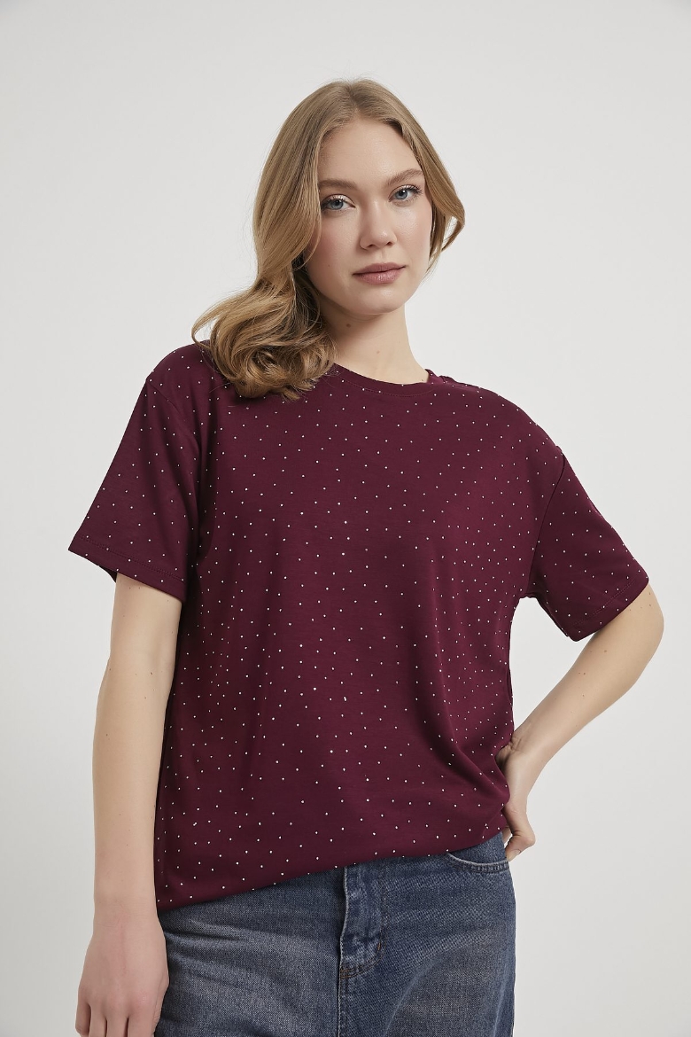 ARMALIFE 11351 BİS YAKA TAŞLI KADIN T-SHIRT