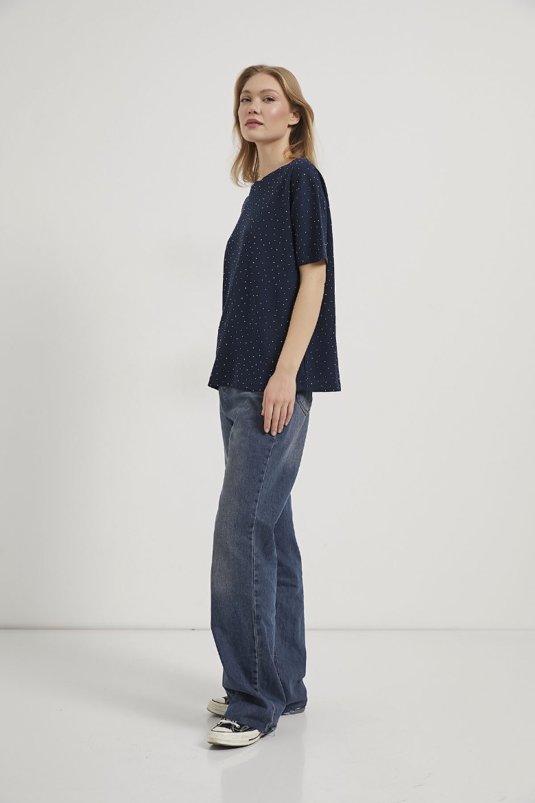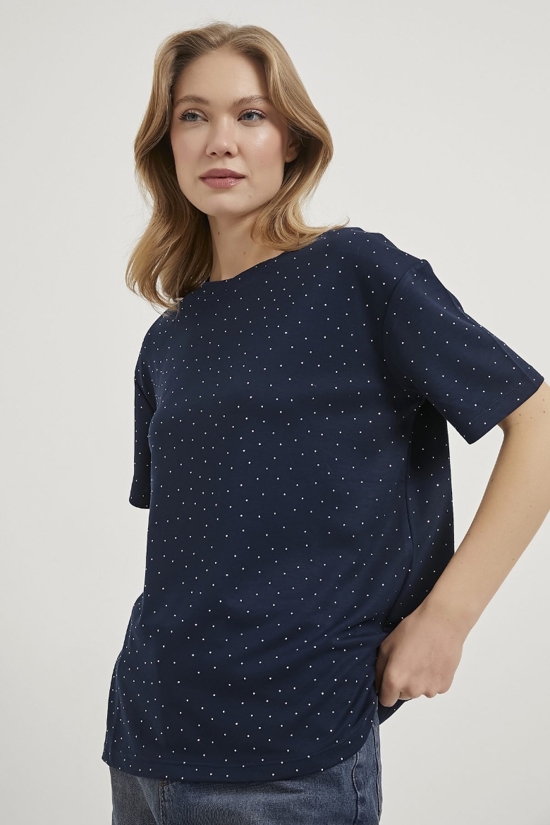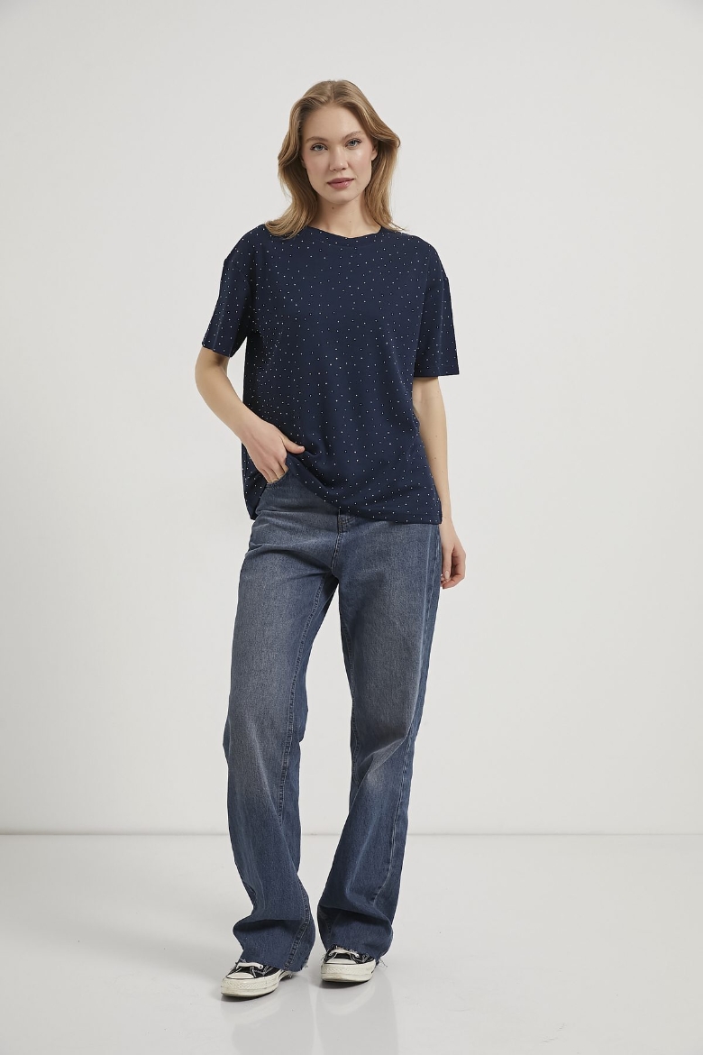 ARMALIFE 11351 BİS YAKA TAŞLI KADIN T-SHIRT
