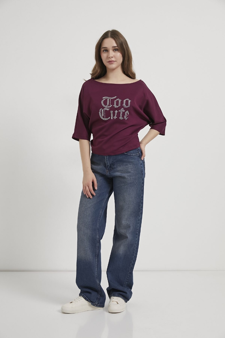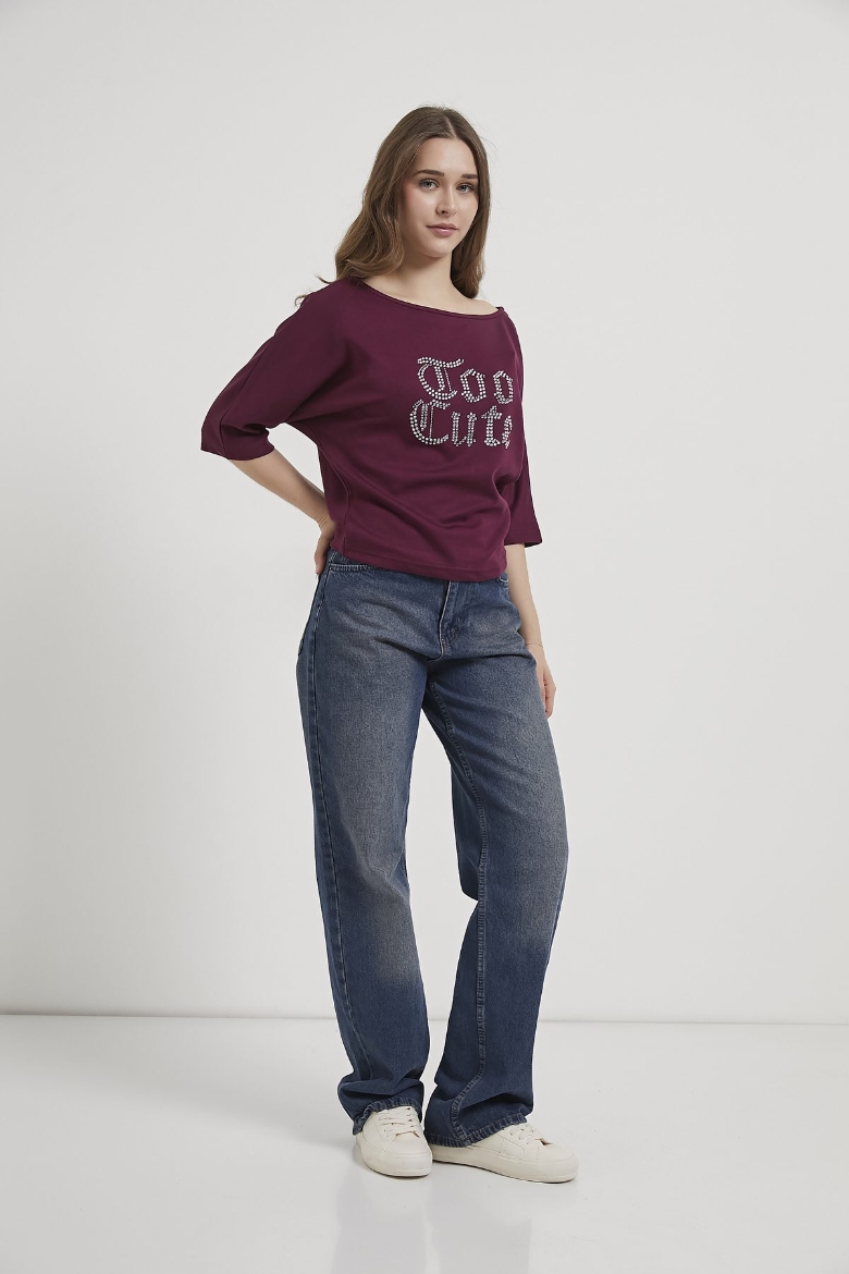 ARMALIFE 11360 KAYIK YAKA TAŞ YAZI DETAYLI KADIN BLUZ