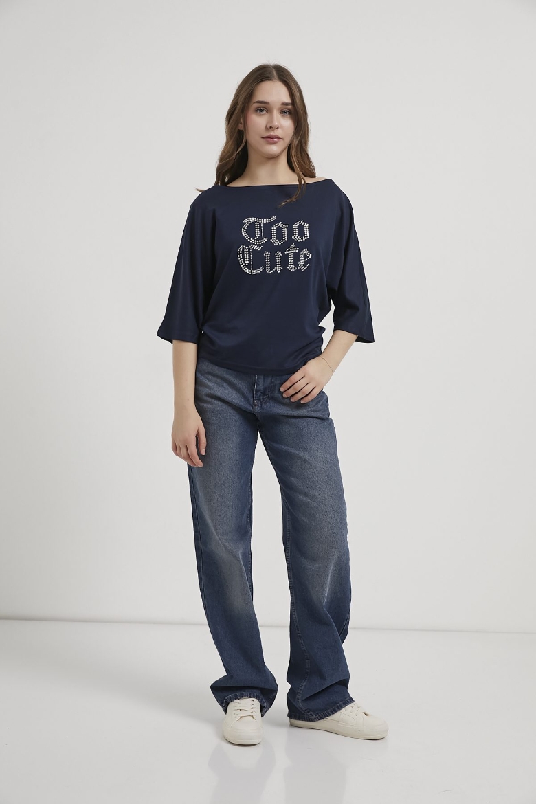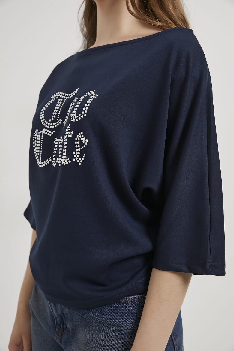 ARMALIFE 11360 KAYIK YAKA TAŞ YAZI DETAYLI KADIN BLUZ