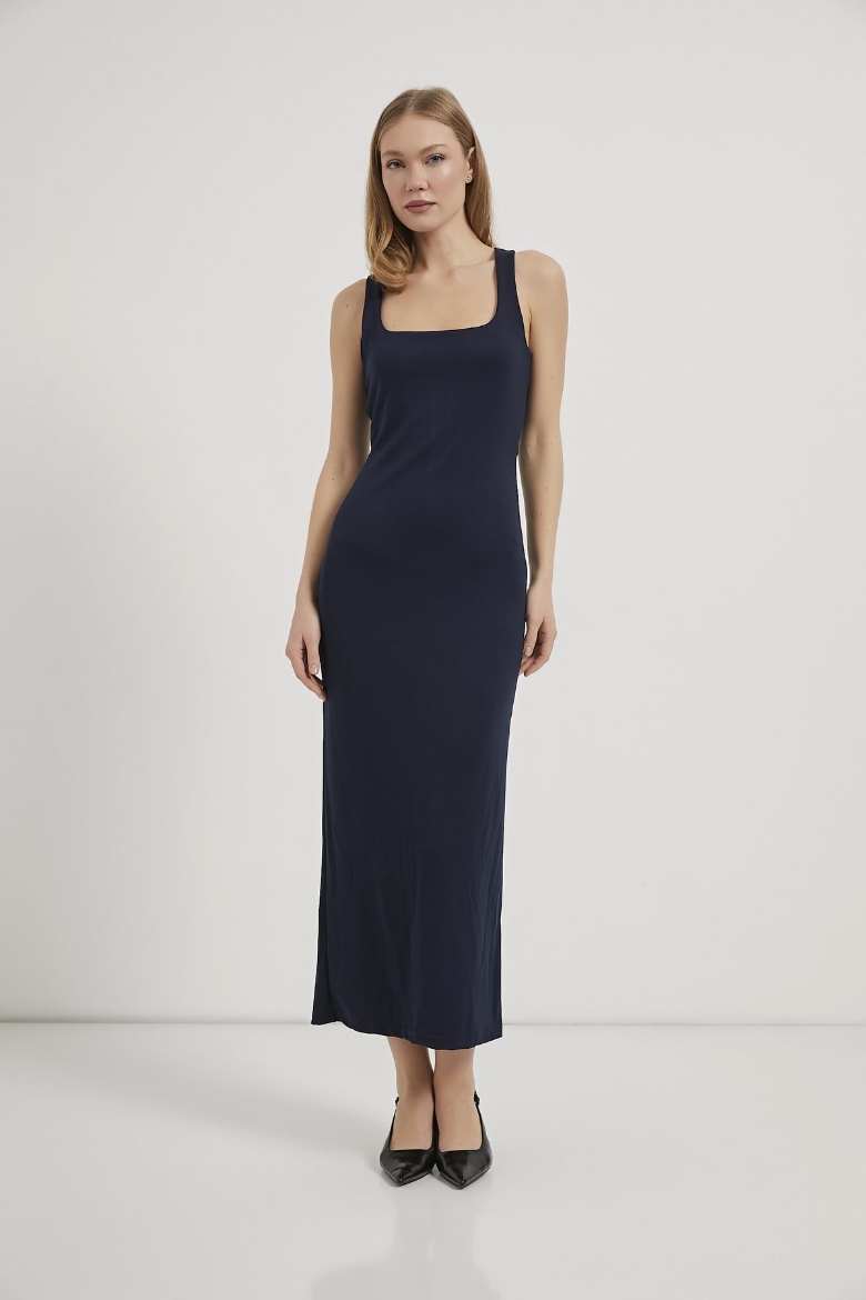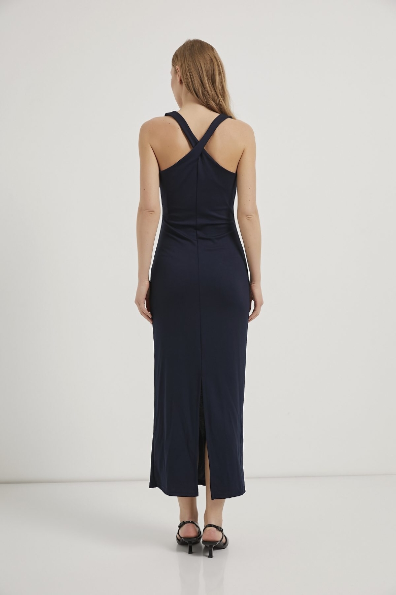 ARMALIFE 11398 SIRT ÇAPRAZ DETAYLI ARKASI YIRTMAÇLI UZUN KADIN ELBİSE