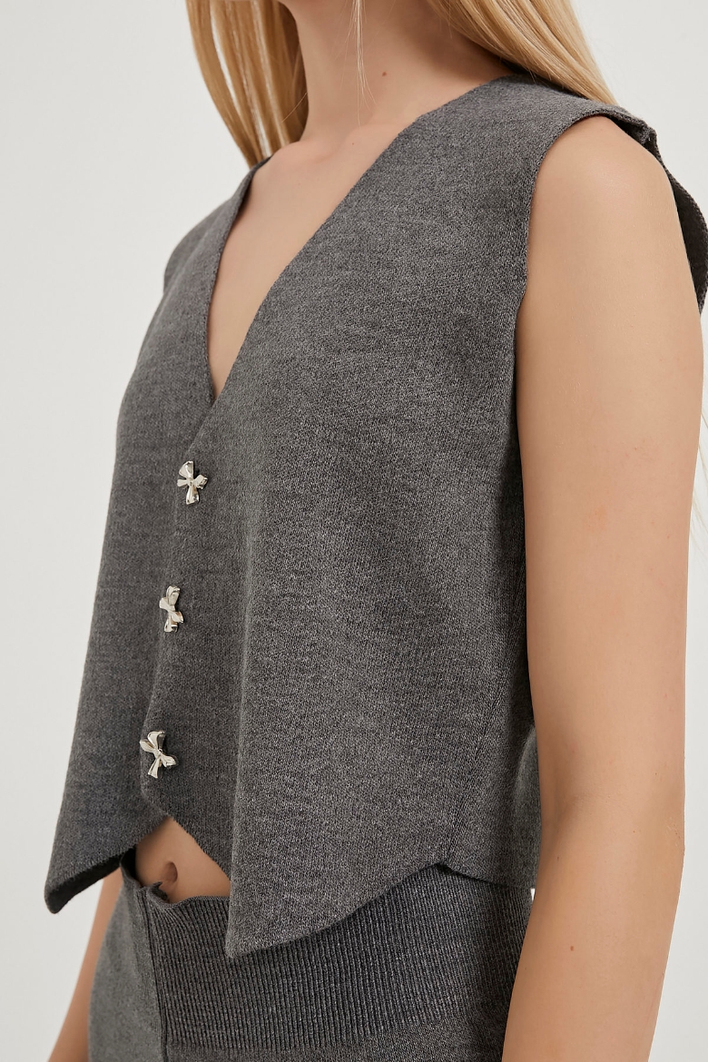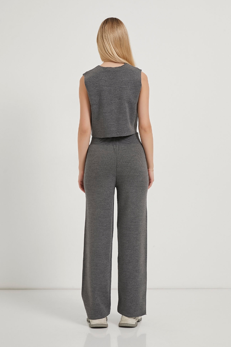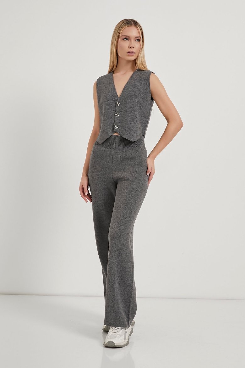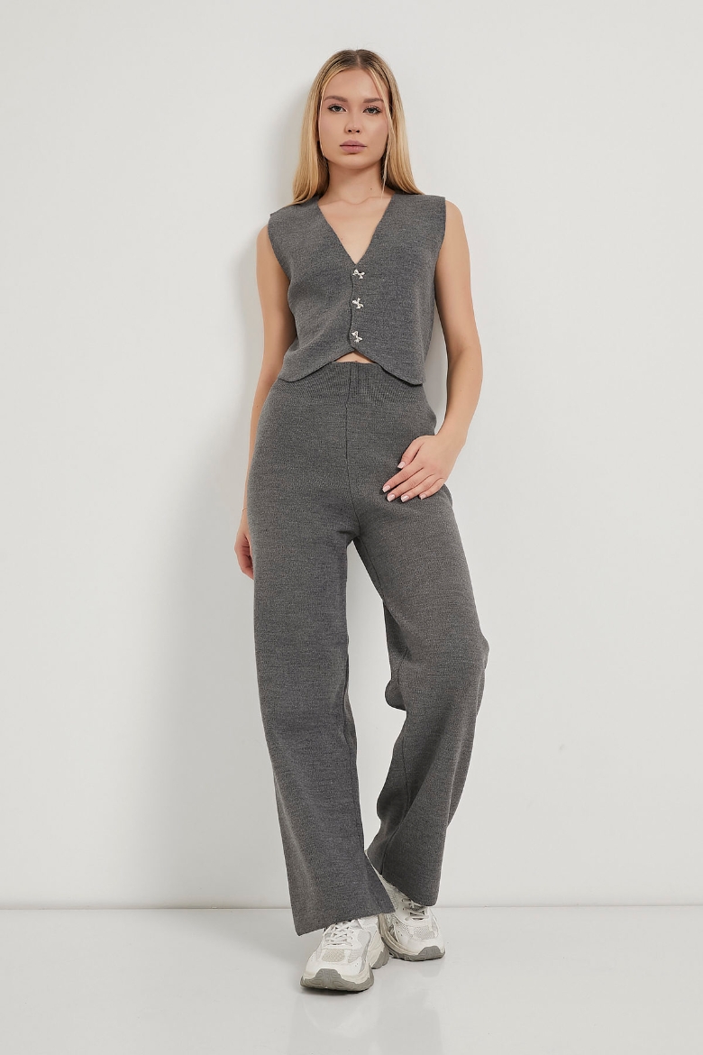 ARMALIFE 1194 DÜĞME DETAYLI YELEK-PANTOLON TRİKO KADIN TAKIM