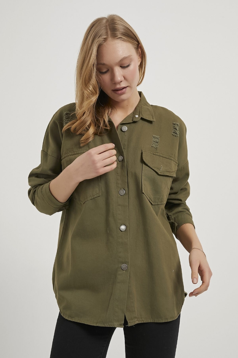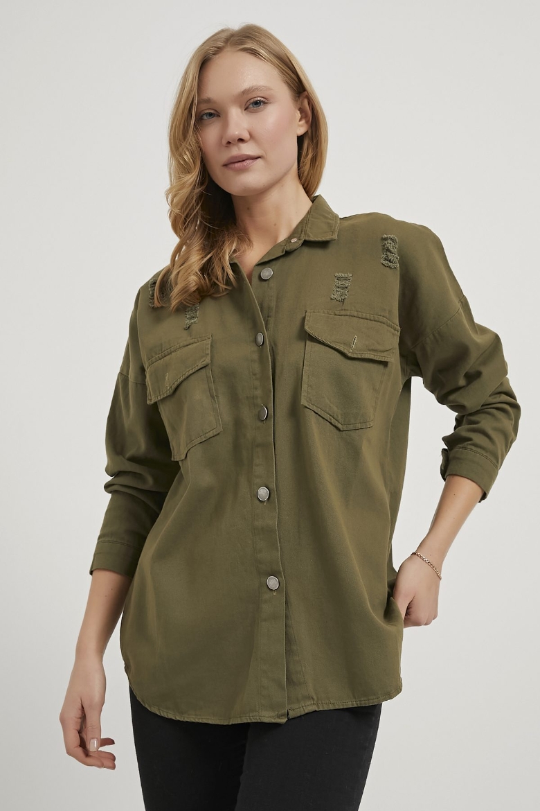 ARMALIFE 1404 LAZER YIRTIKLI GABARDİN KADIN GÖMLEK