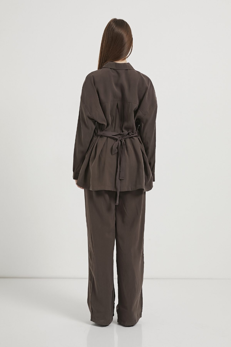 ARMALIFE 1406 PREMIUM BELİ KUŞAKLI KADIN GÖMLEK PANTOLON TAKIM