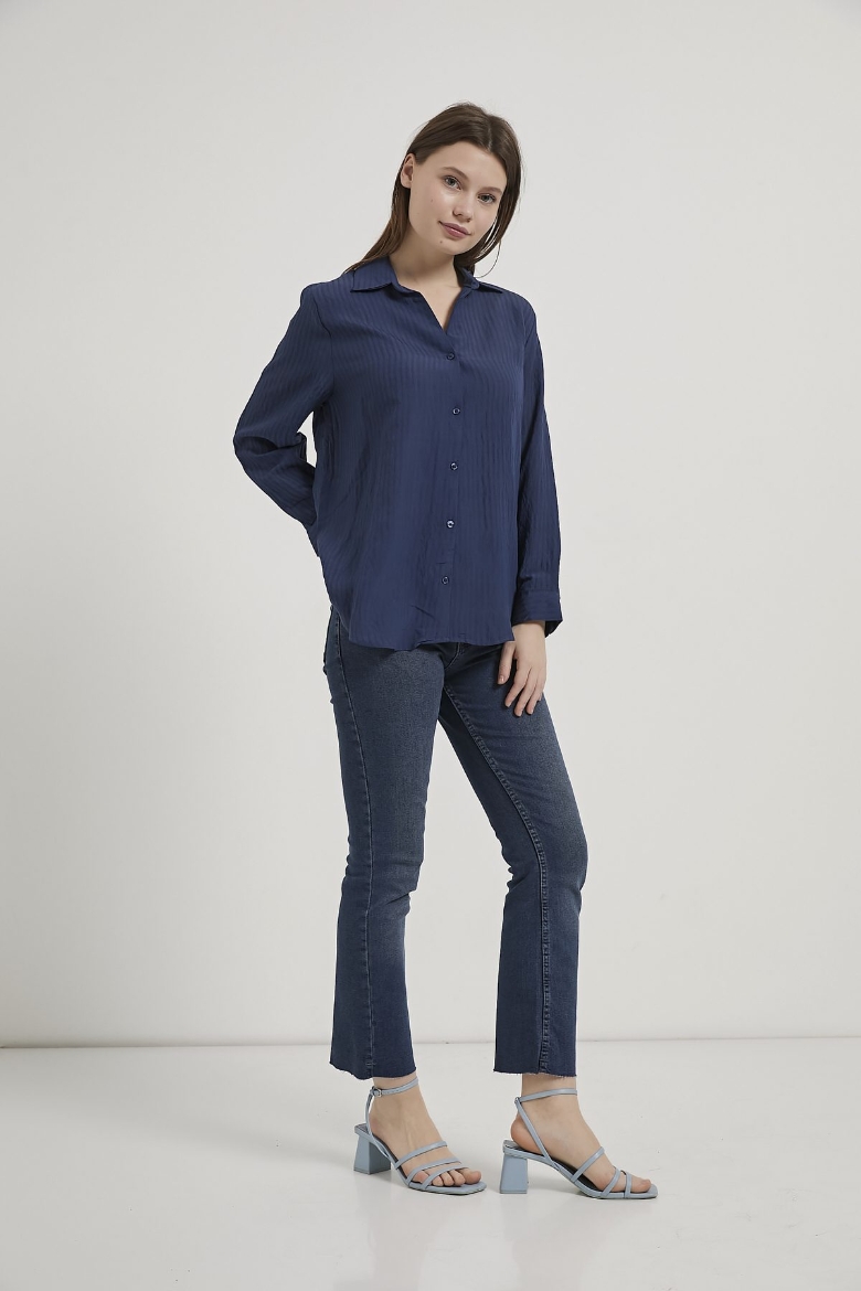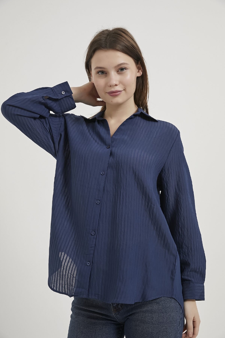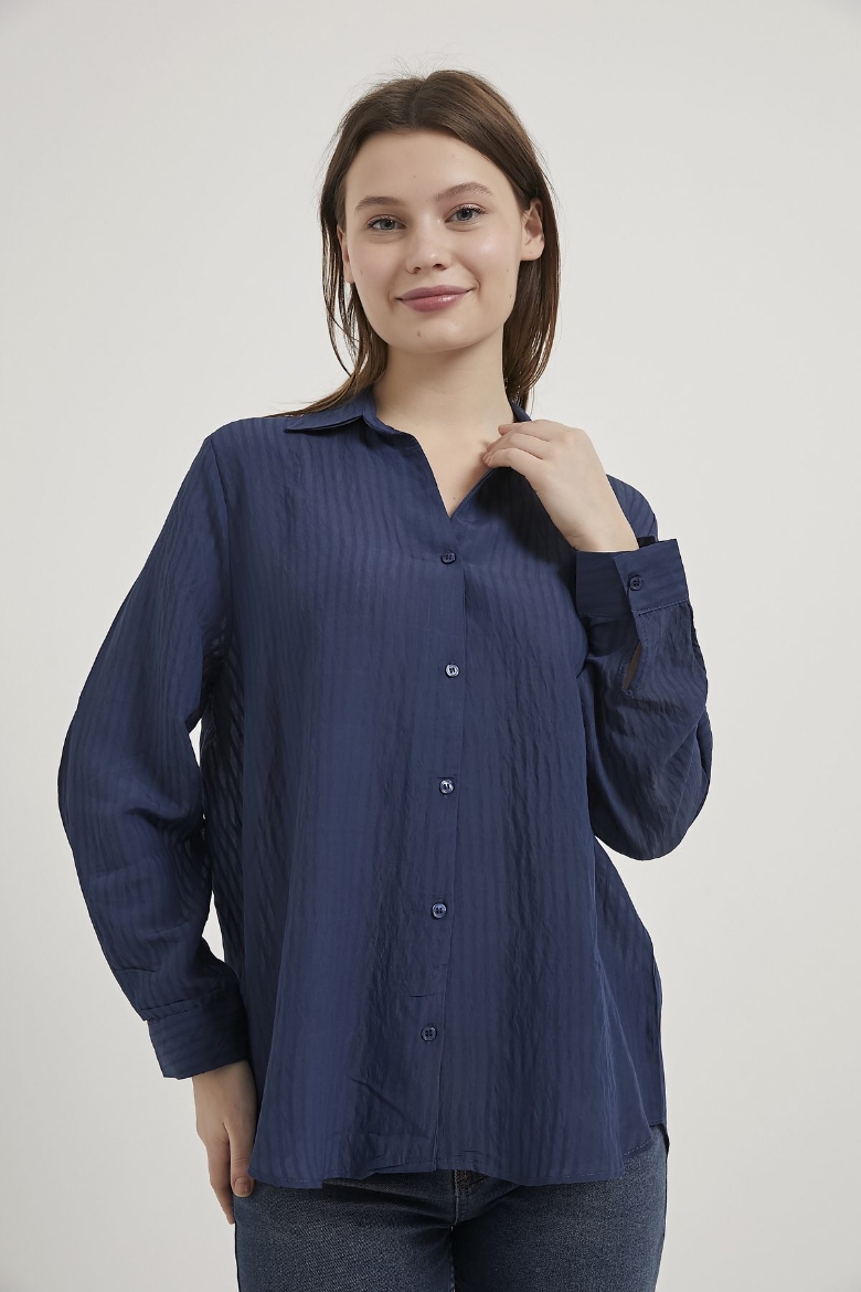 ARMALIFE 1407 AÇIK YAKA İNCE ÇİZGİ DETAYLI KADIN GÖMLEK