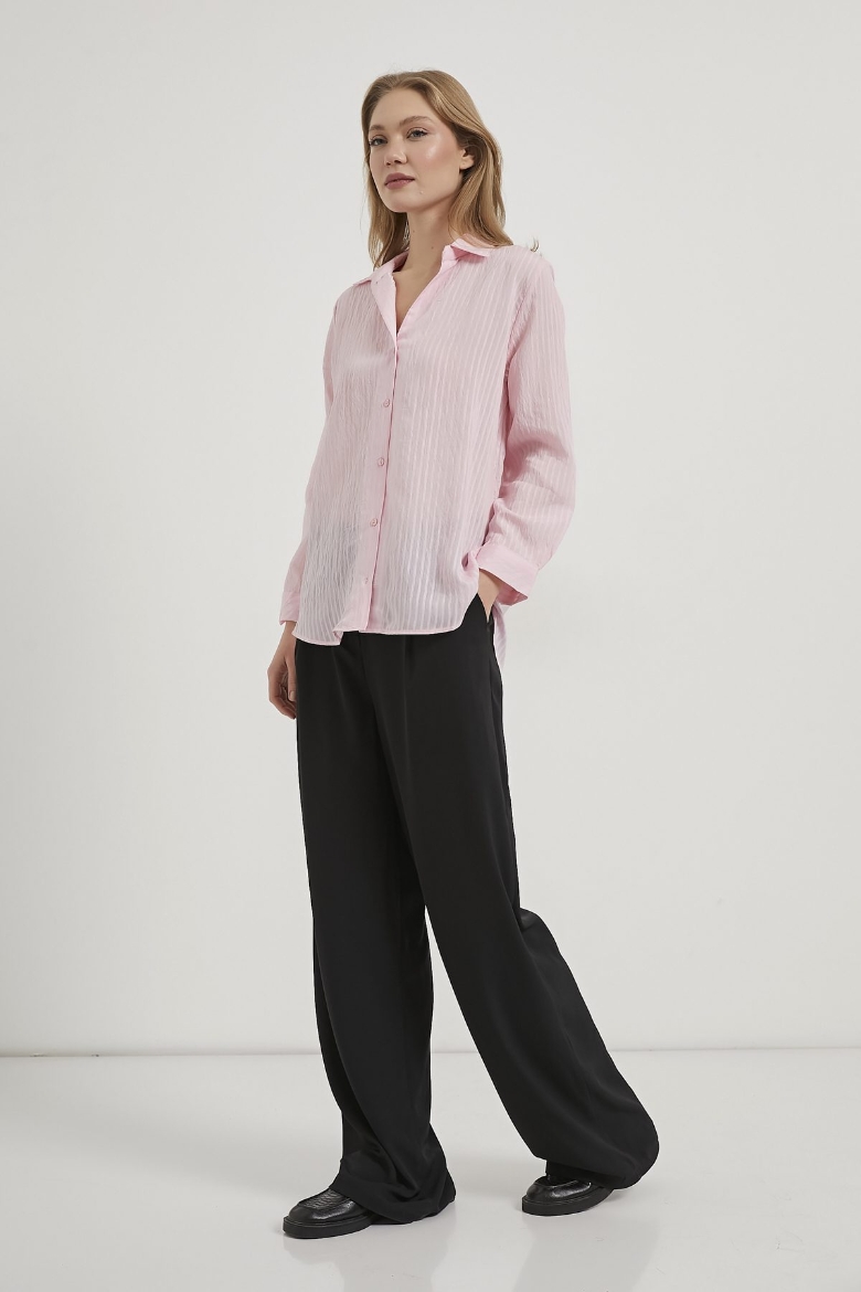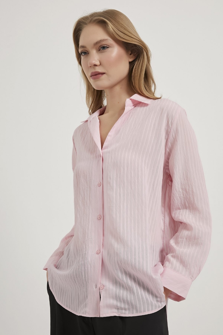 ARMALIFE 1407 AÇIK YAKA İNCE ÇİZGİ DETAYLI KADIN GÖMLEK