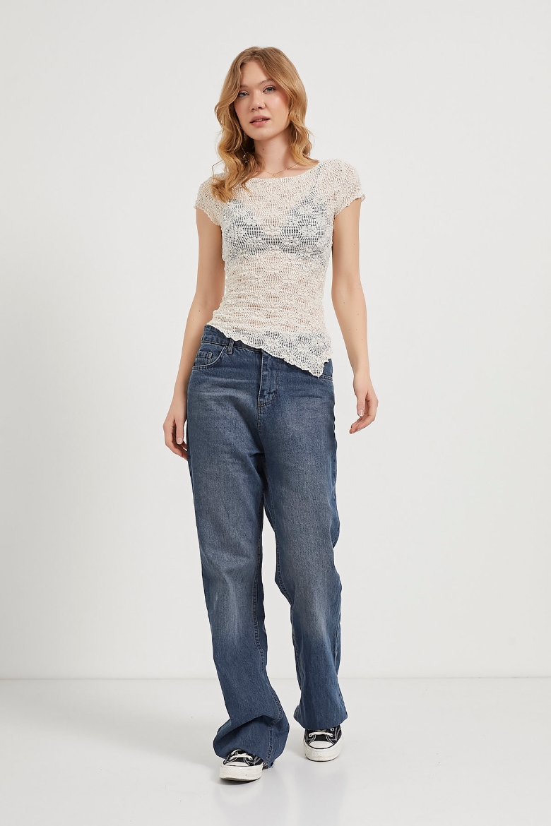 ARMALIFE 1424 KAYIK YAKA ETEĞİ ASİMETRİK JAKARLI ESNEK KADIN BLUZ