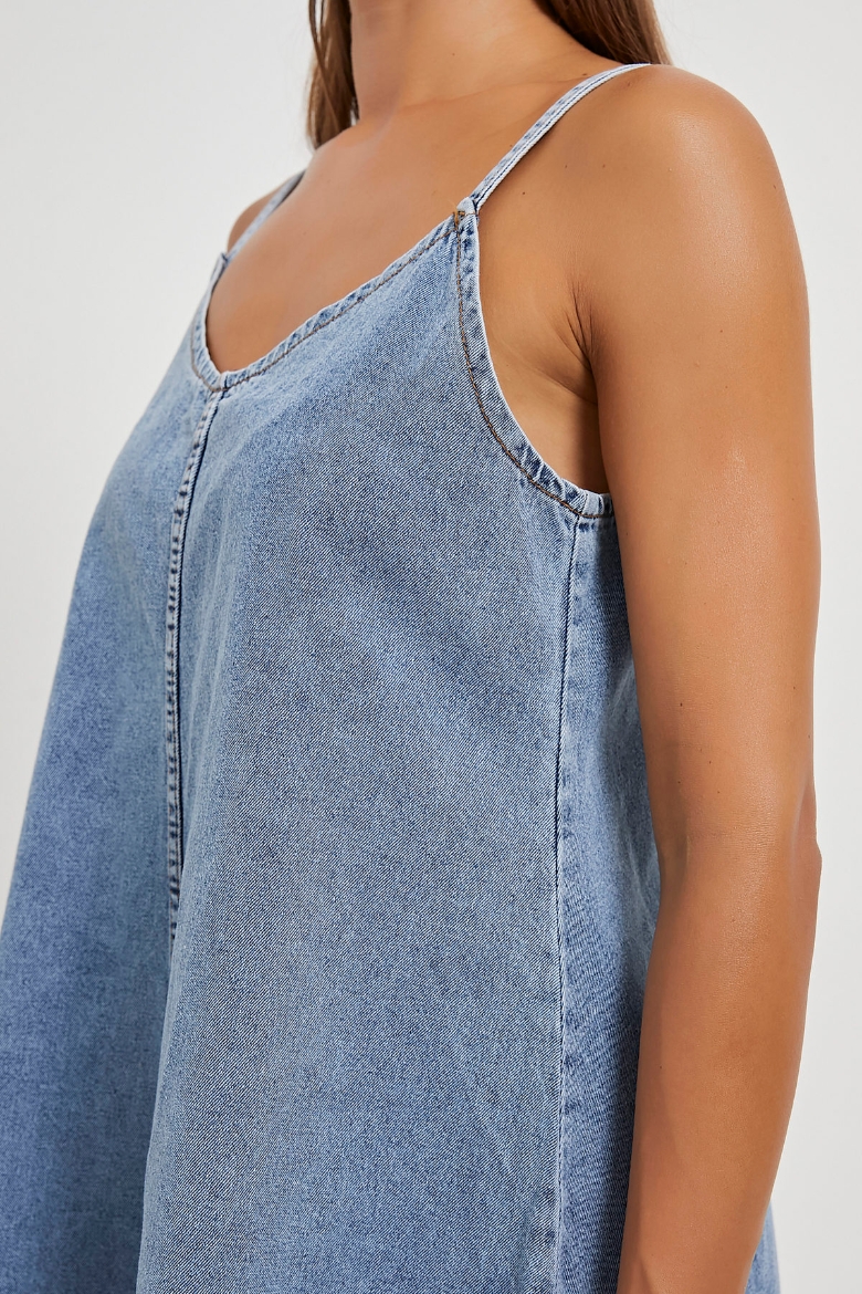 ARMALIFE 1430 ASKILI MİDİ DENİM KADIN ELBİSE