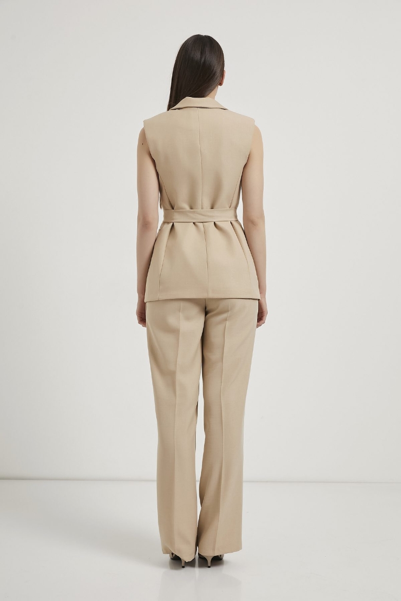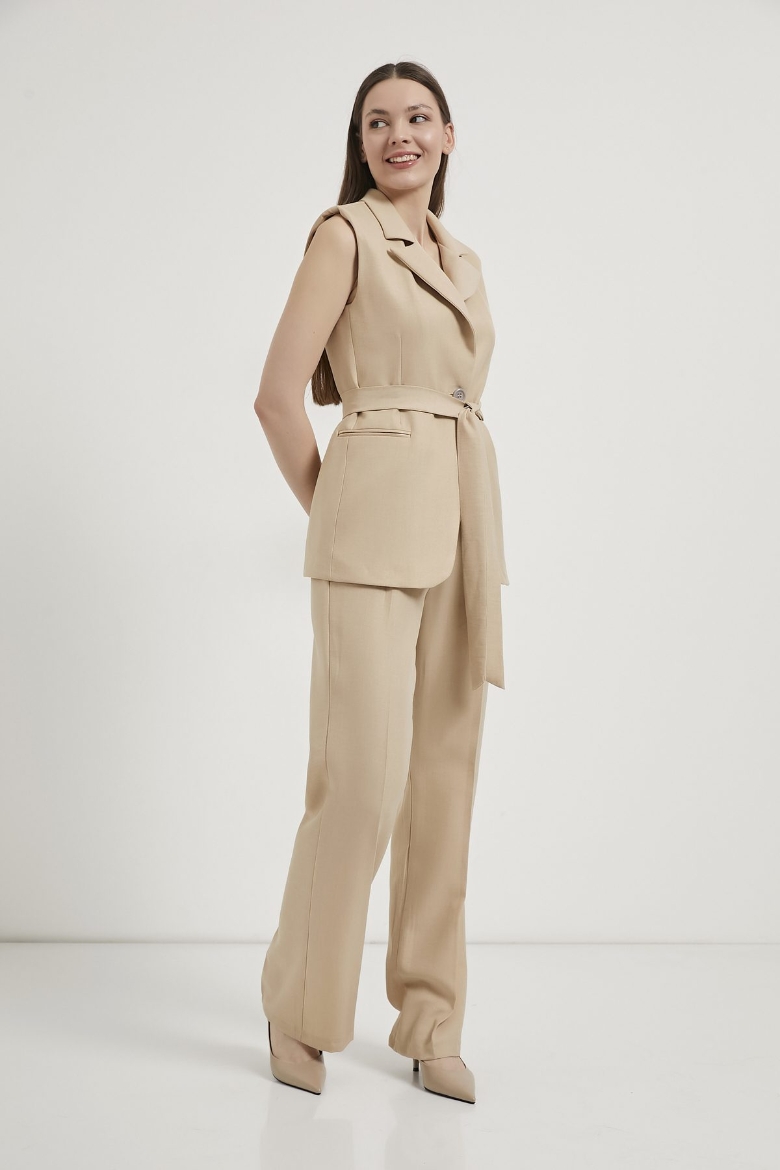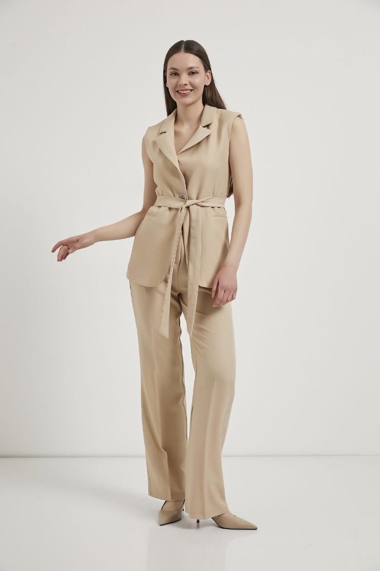 ARMALIFE 1483 KEMERLİ CEKET YAKA YELEK-BELİ LASTİK DETAYLI PANTOLON KADIN TAKIM