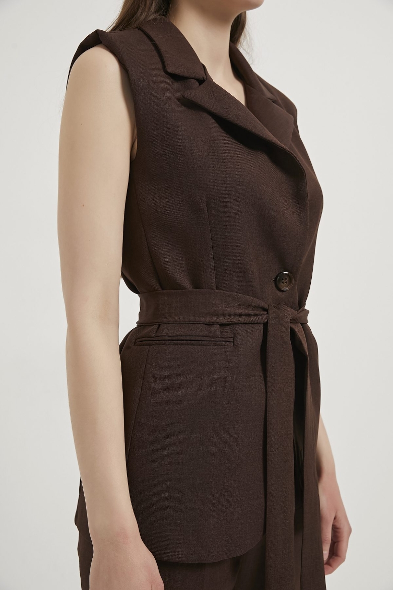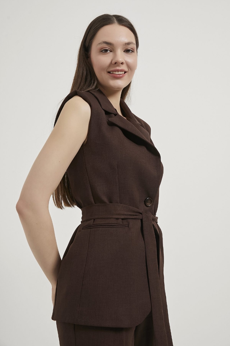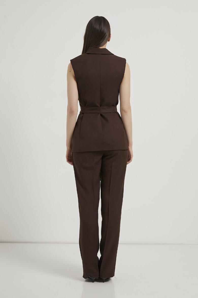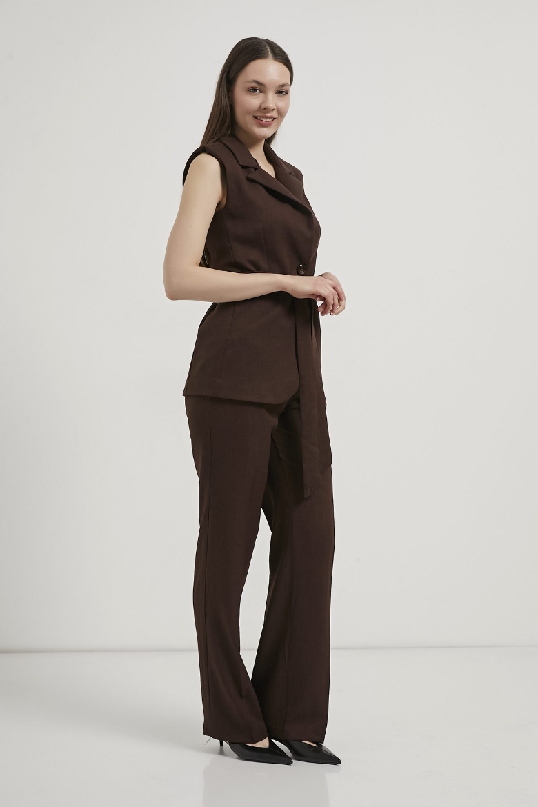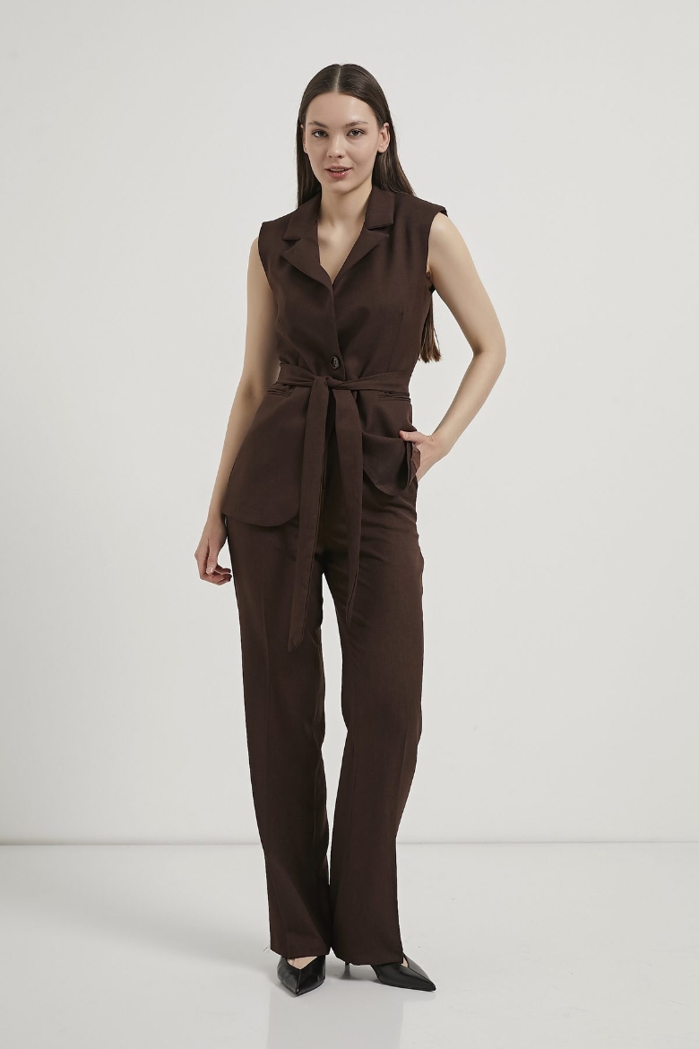 ARMALIFE 1483 KEMERLİ CEKET YAKA YELEK-BELİ LASTİK DETAYLI PANTOLON KADIN TAKIM