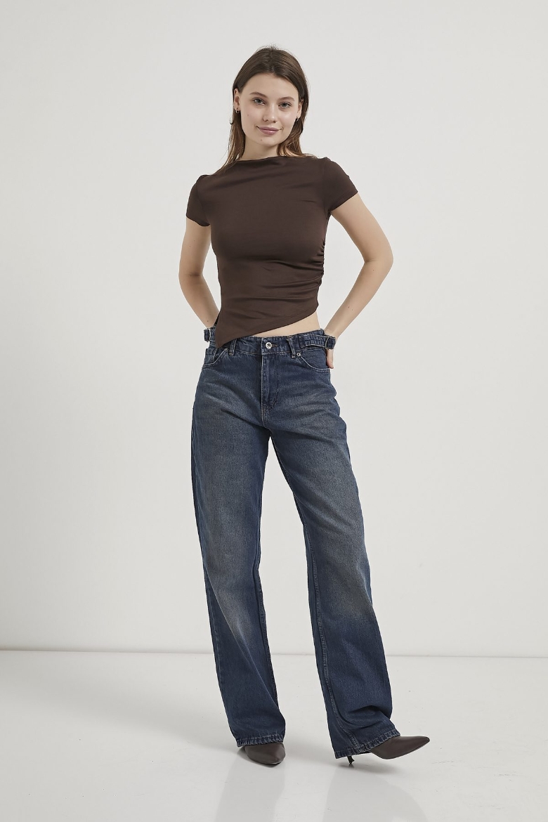 ARMALIFE 1489 ASİMETRİK DETAYLI YANI BÜZGÜLÜ KADIN BLUZ