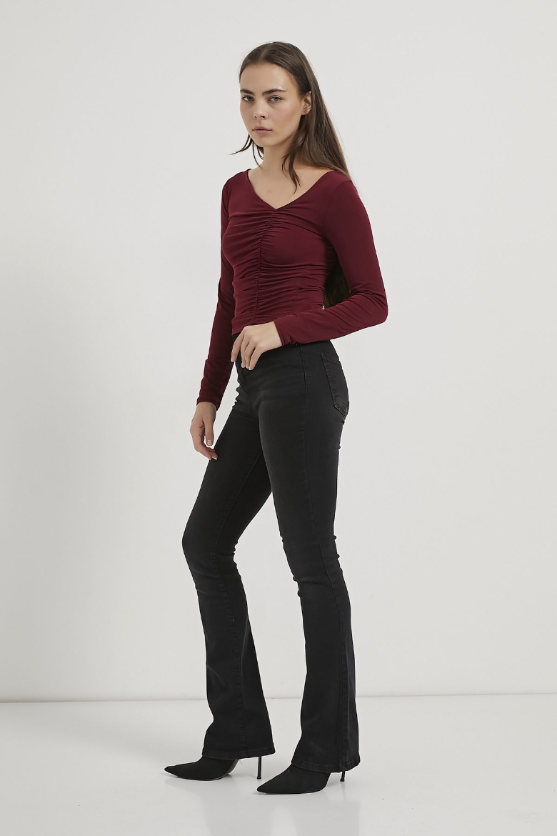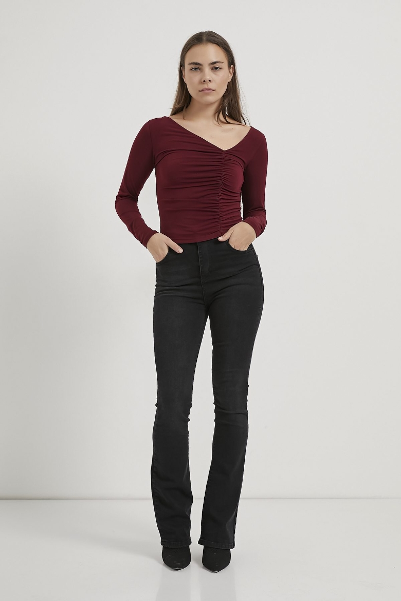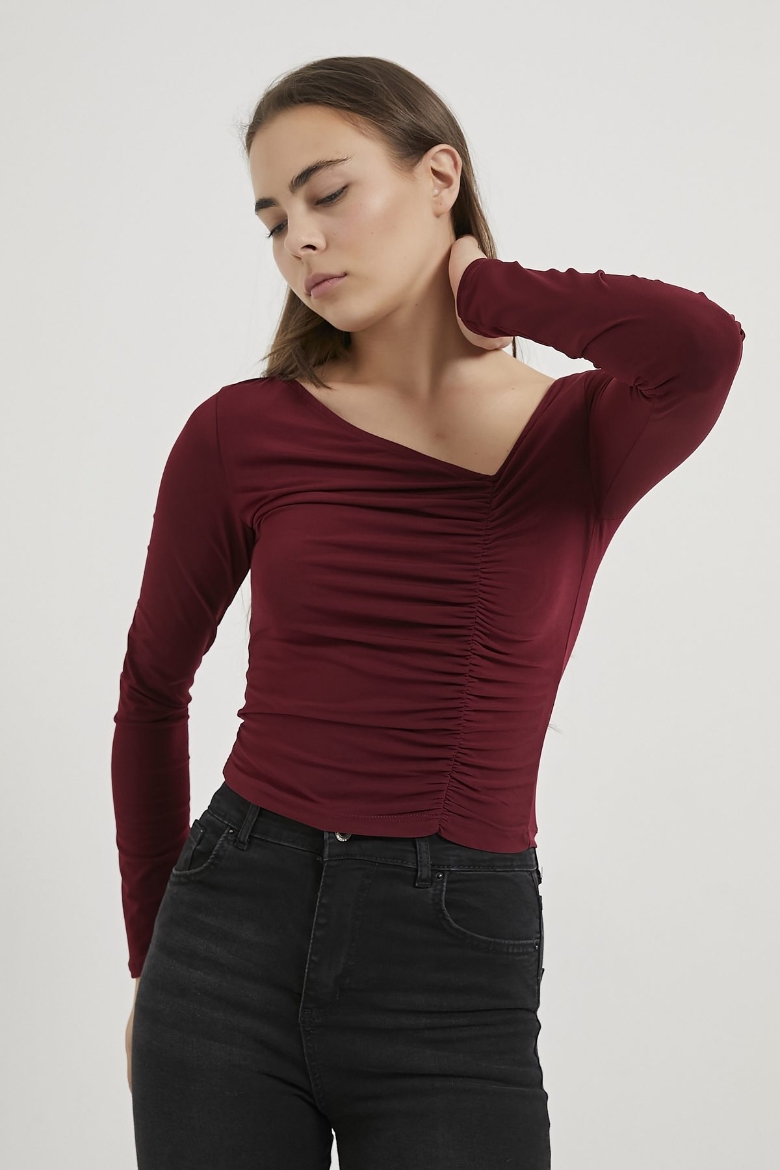 ARMALIFE 1500 ASİMETRİK YAKA BÜZGÜLÜ KADIN BLUZ