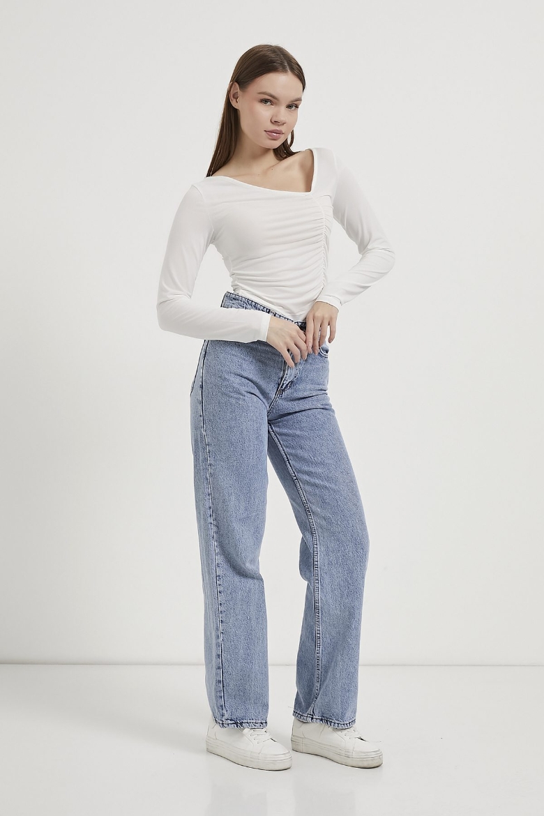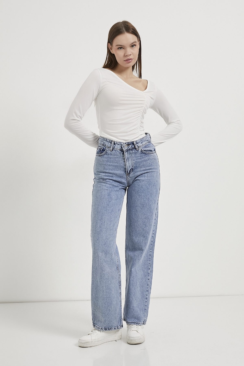 ARMALIFE 1500 ASİMETRİK YAKA BÜZGÜLÜ KADIN BLUZ