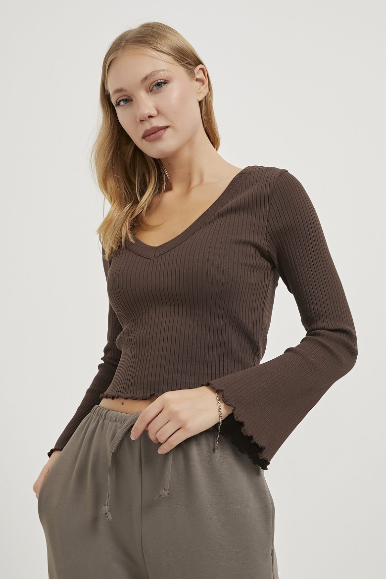 ARMALIFE 1508 V YAKA FİTİLLİ GENİŞ KOL KADIN BODY