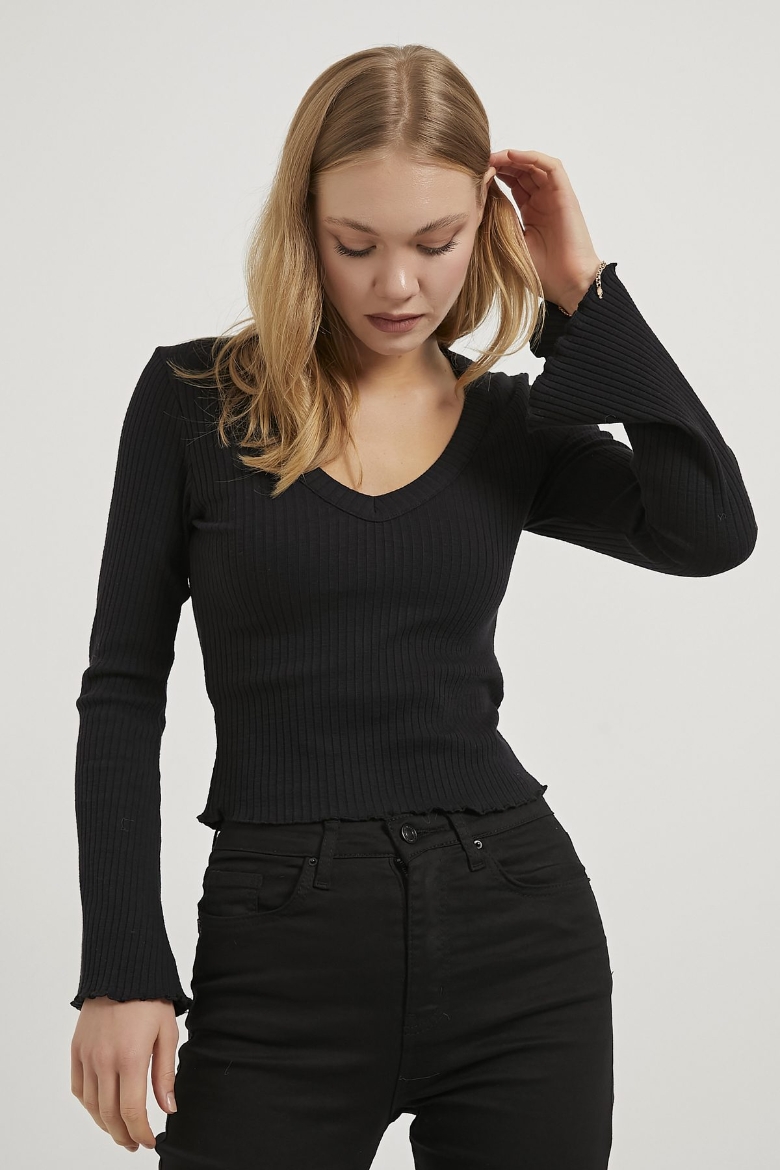 ARMALIFE 1508 V YAKA FİTİLLİ GENİŞ KOL KADIN BODY