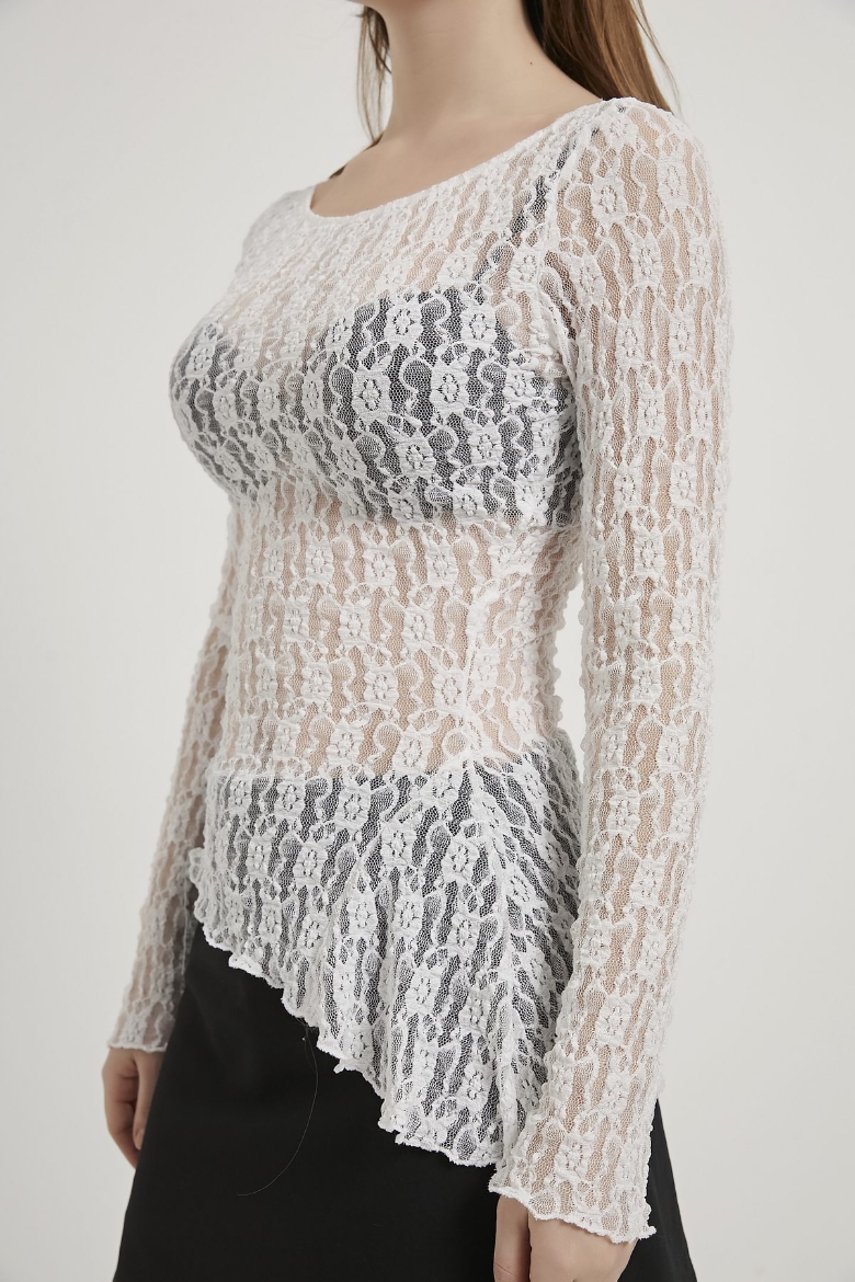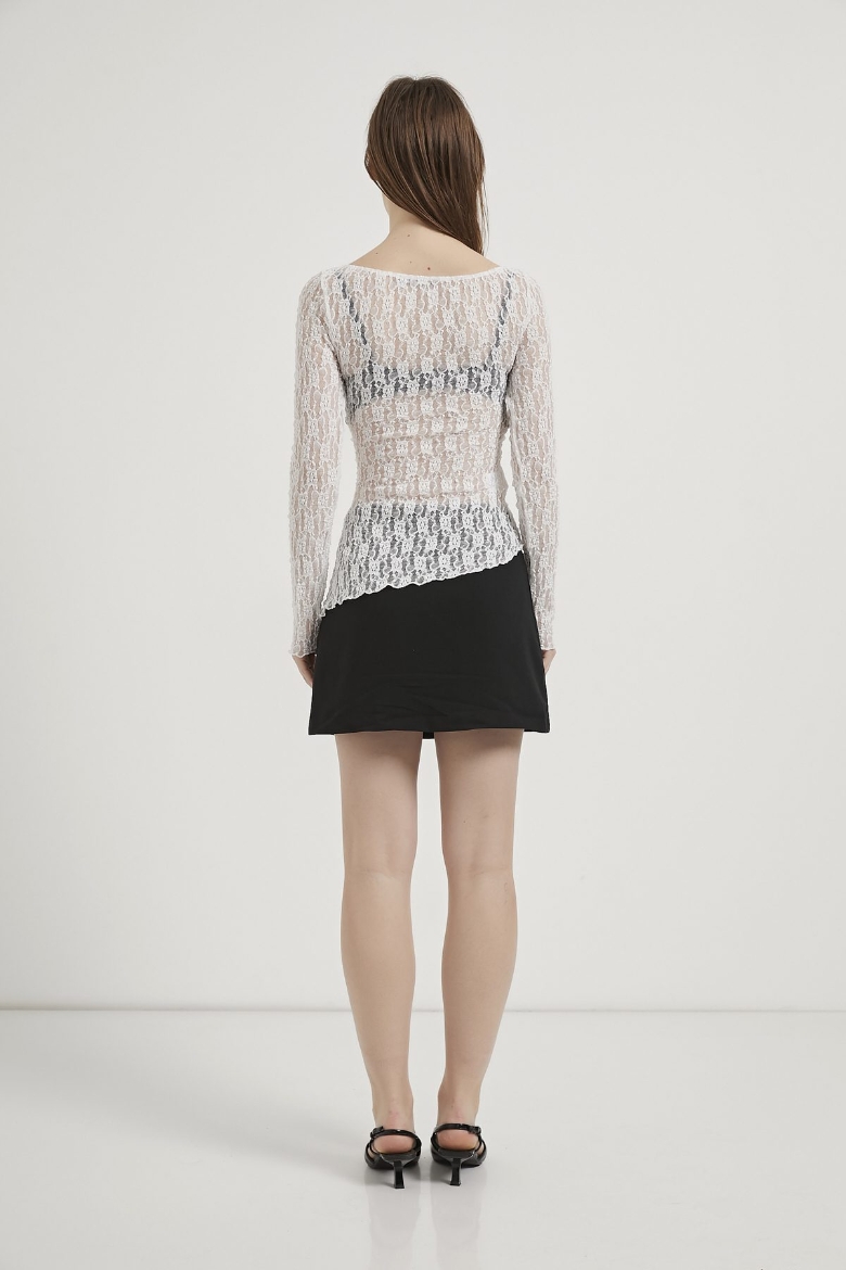 ARMALIFE 1517 KAYIK YAKA ASİMETRİK DANTEL KADIN BLUZ