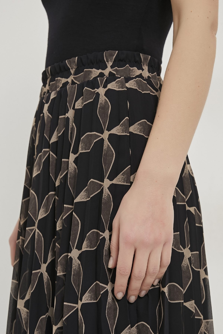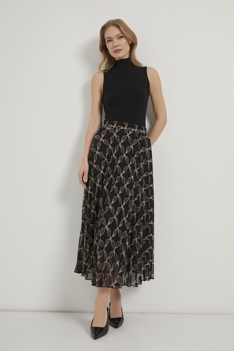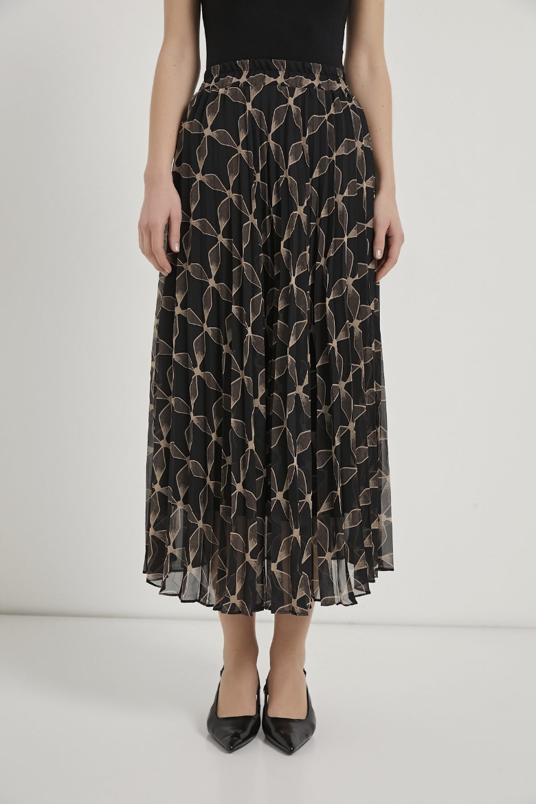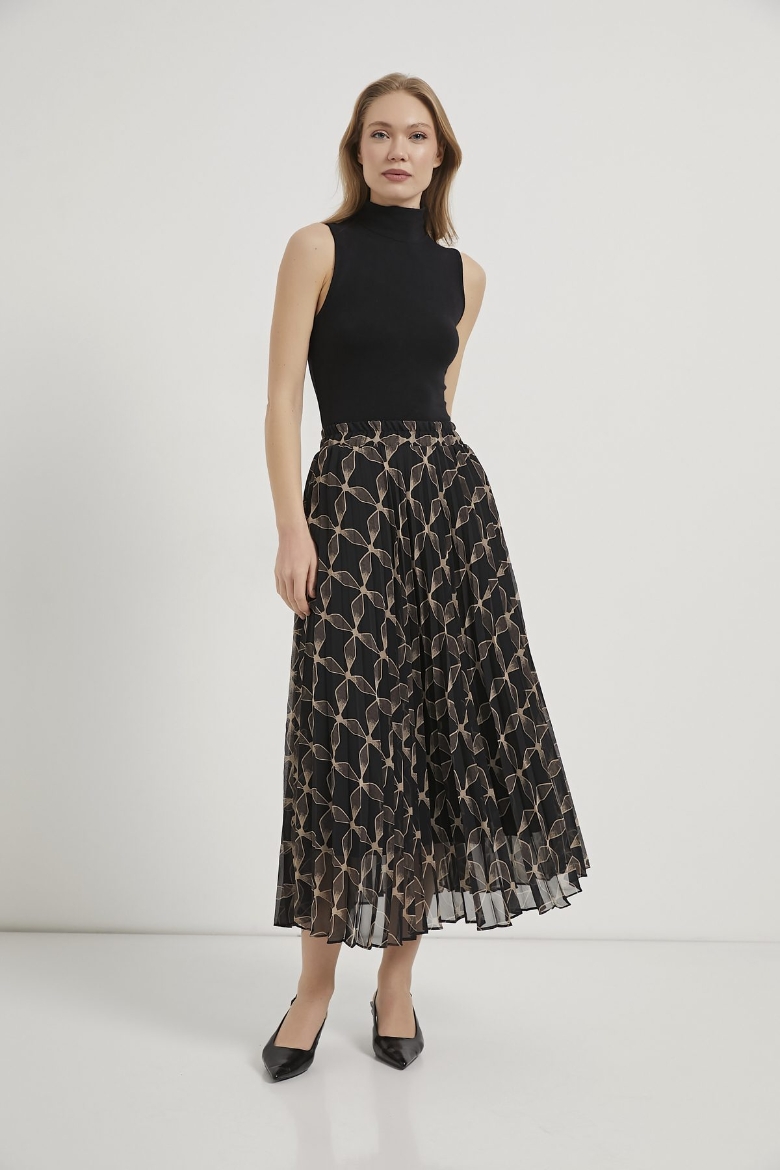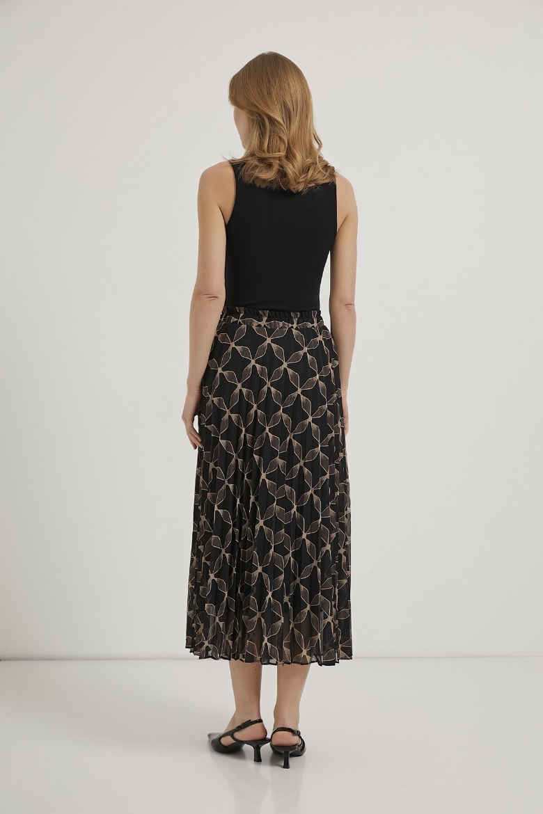 ARMALIFE 1527 PİLİSELİ DESENLİ BELİ LASTİKLİ ŞİFON KADIN ETEK