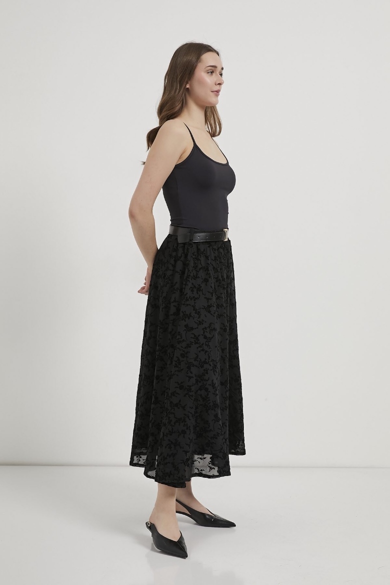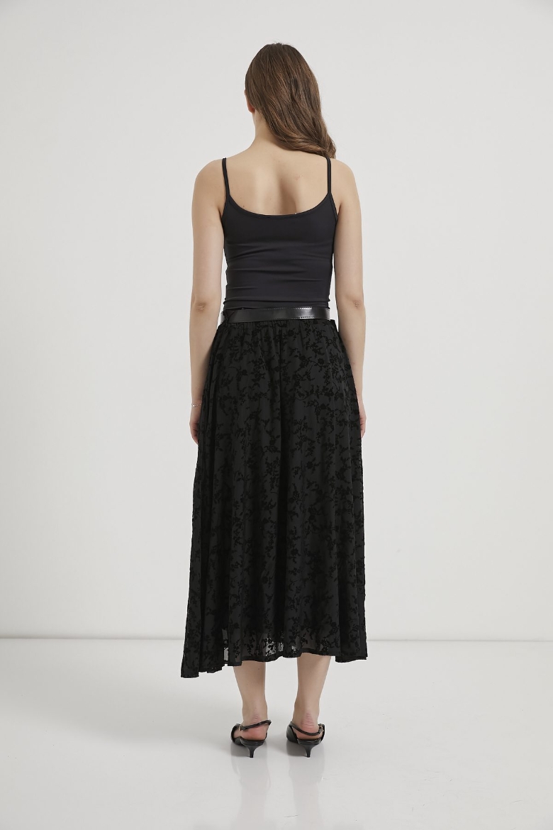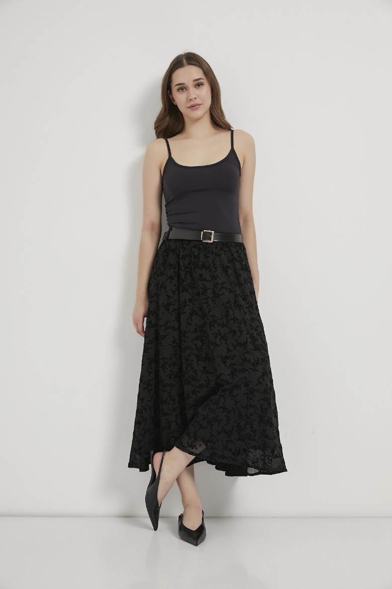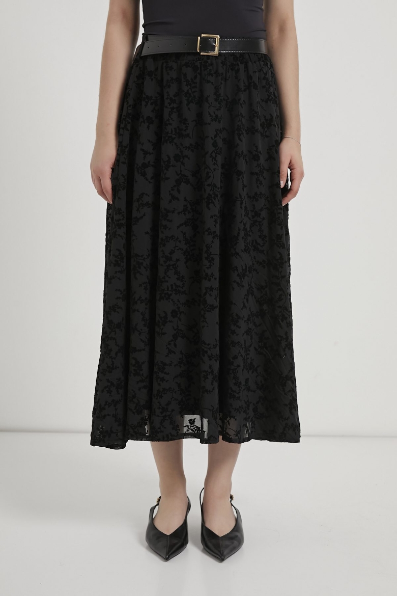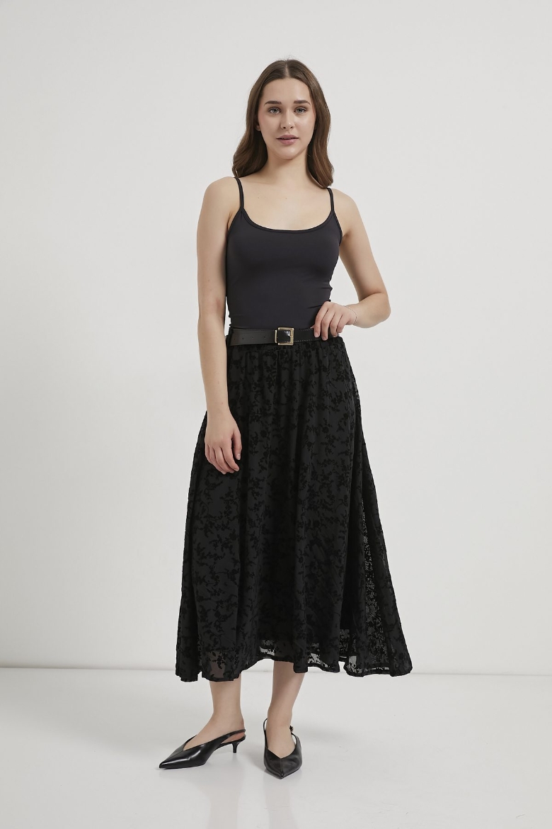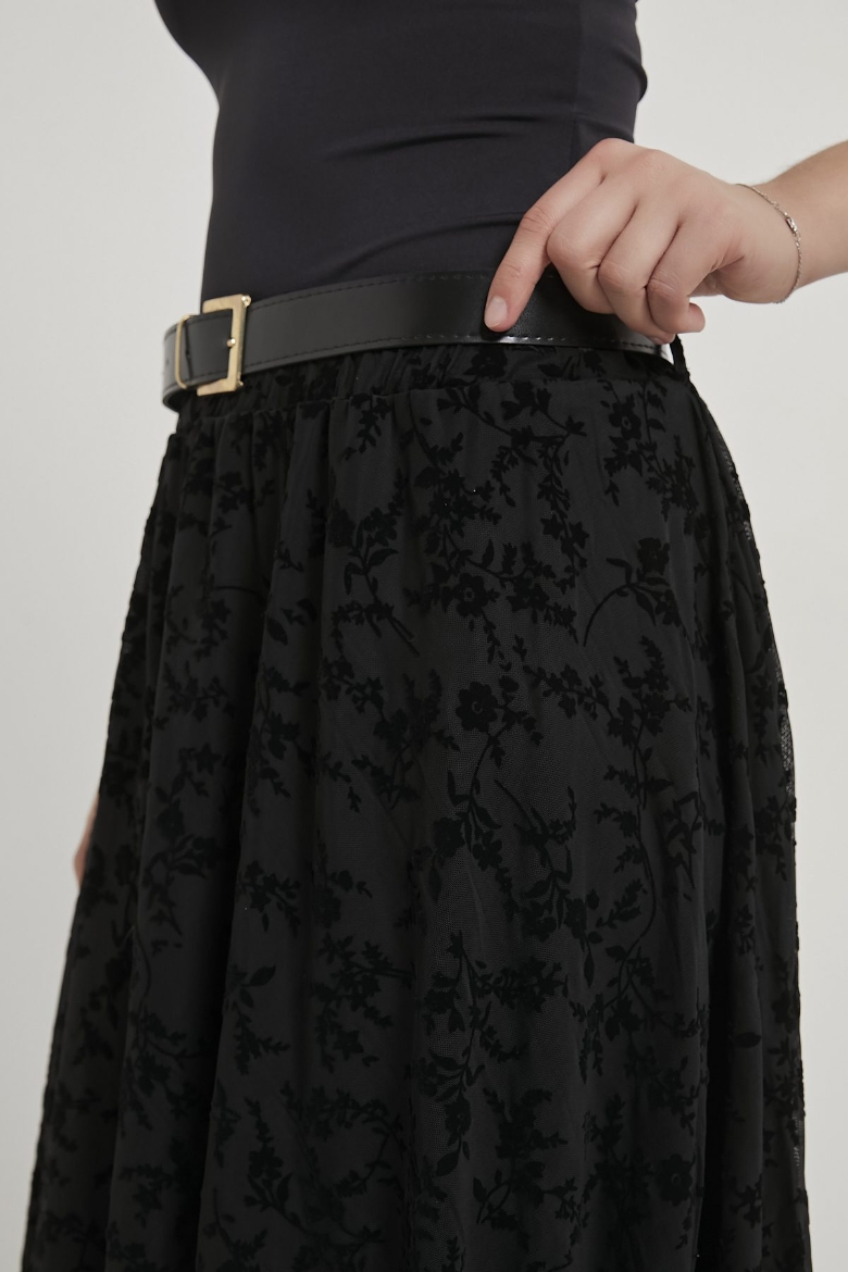 ARMALIFE 1537 KEMERLİ FLOK BASKILI TÜL MİDİ KADIN ETEK