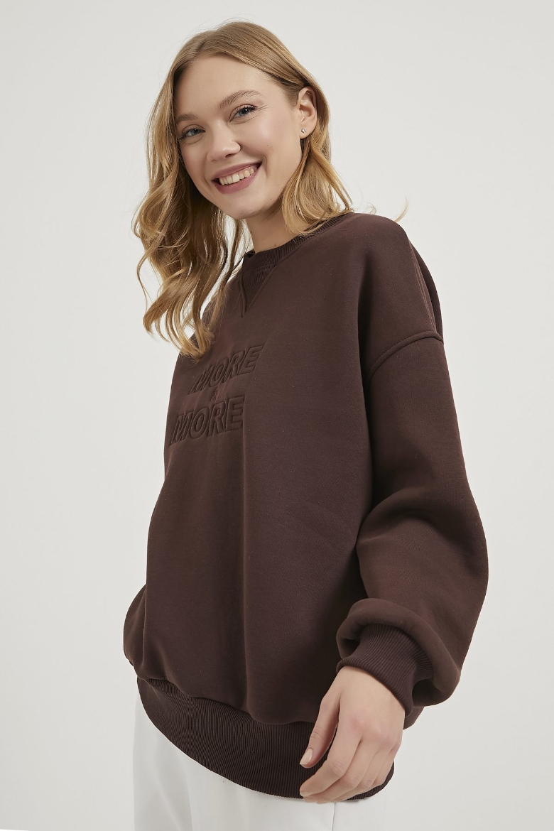 ARMALIFE 1558 NAKIŞLI YAKA DETAY OVERSİZE KADIN SWEATSHİRT