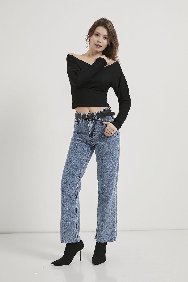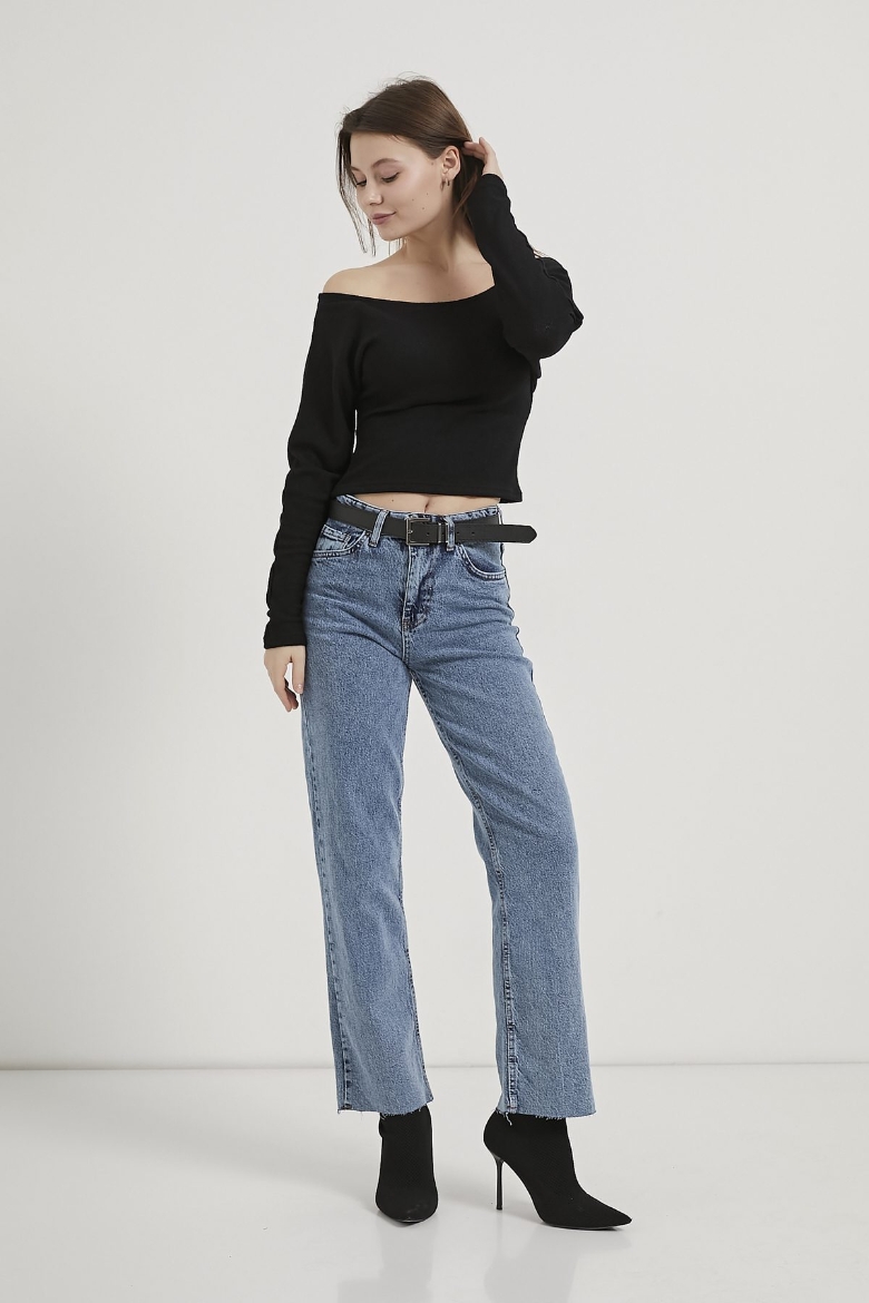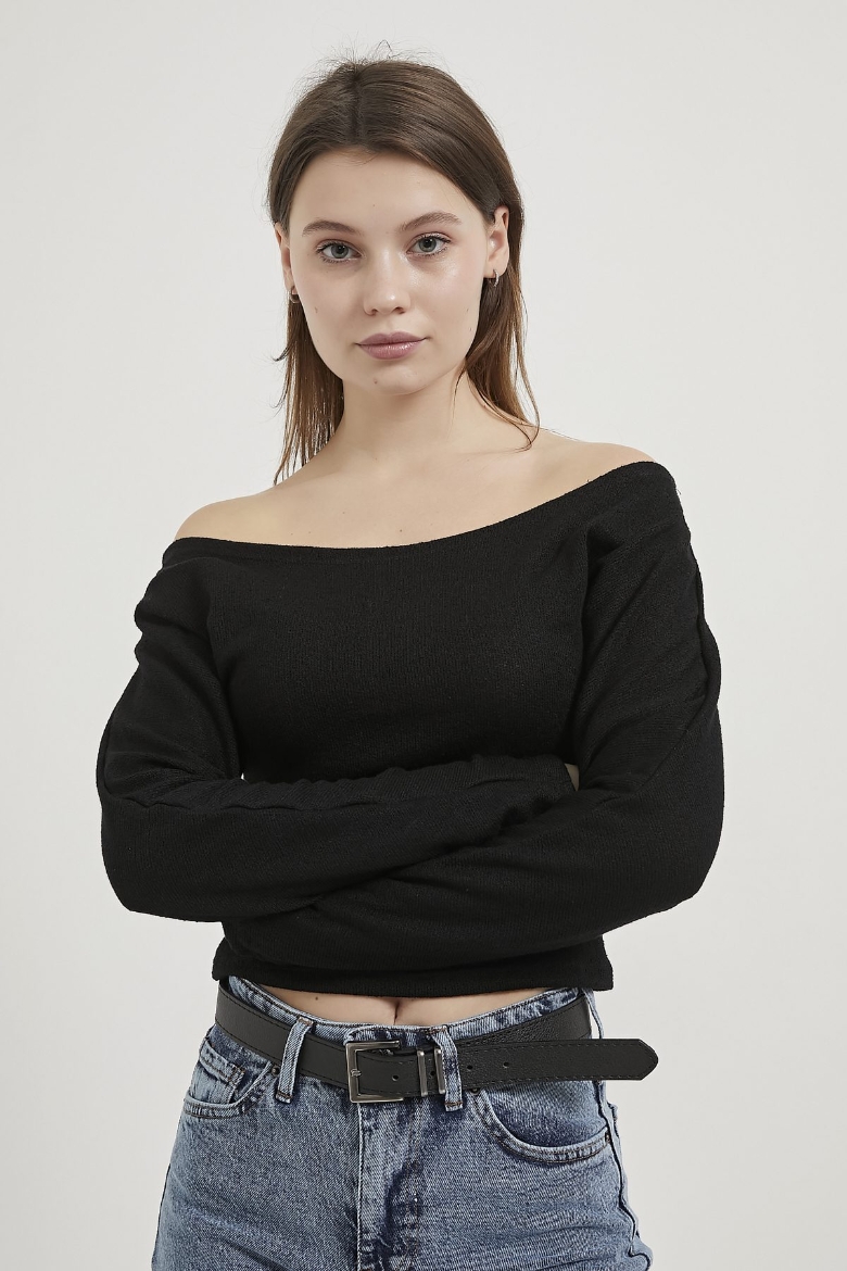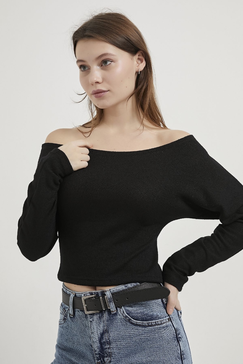 ARMALIFE 1629 KAYIK YAKA CROP ESNEK KADIN BLUZ