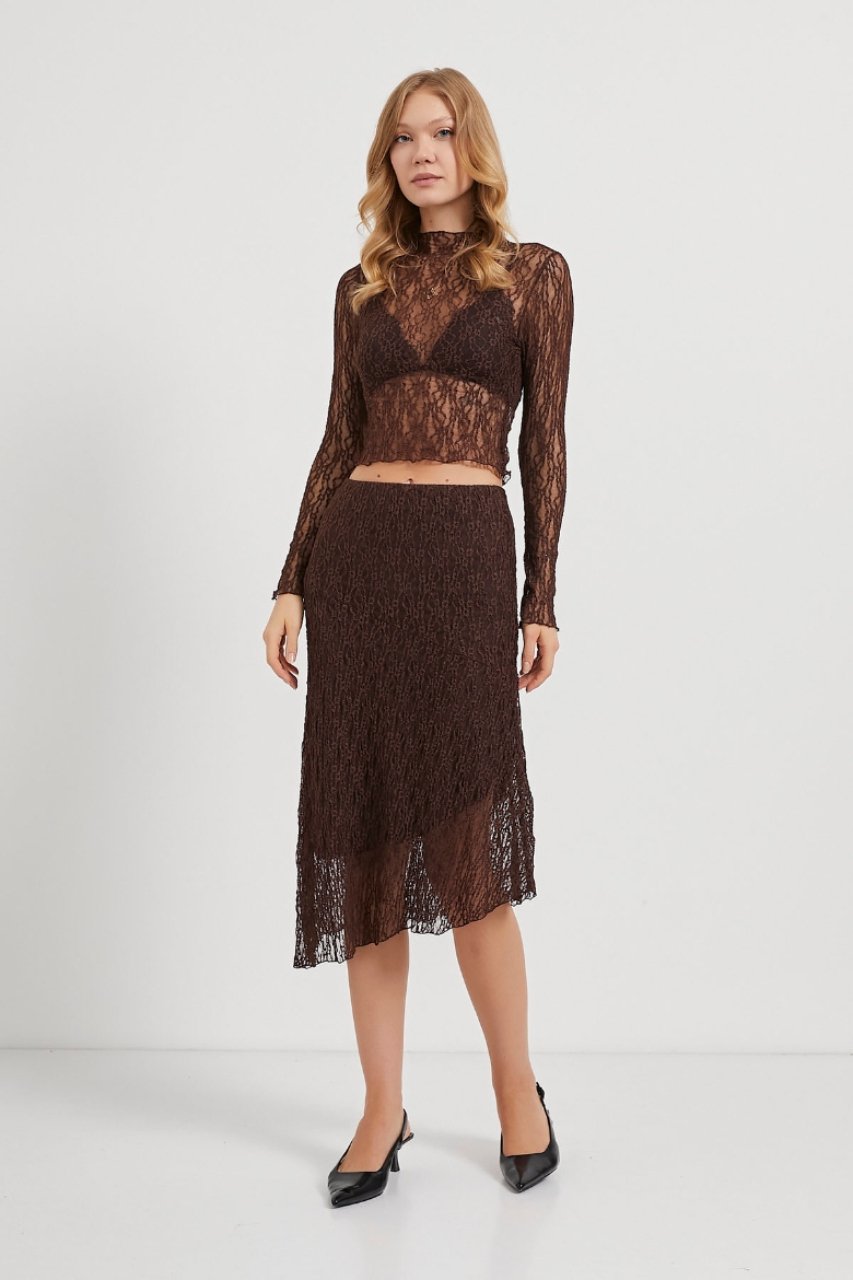 ARMALIFE 1630 ASİMETRİK MİDİ DANTEL KADIN ETEK