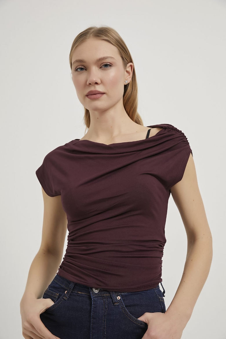 ARMALIFE 1632 OMUZ BÜZGÜ BÜZGÜLÜ AÇIK YAKA KADIN BLUZ