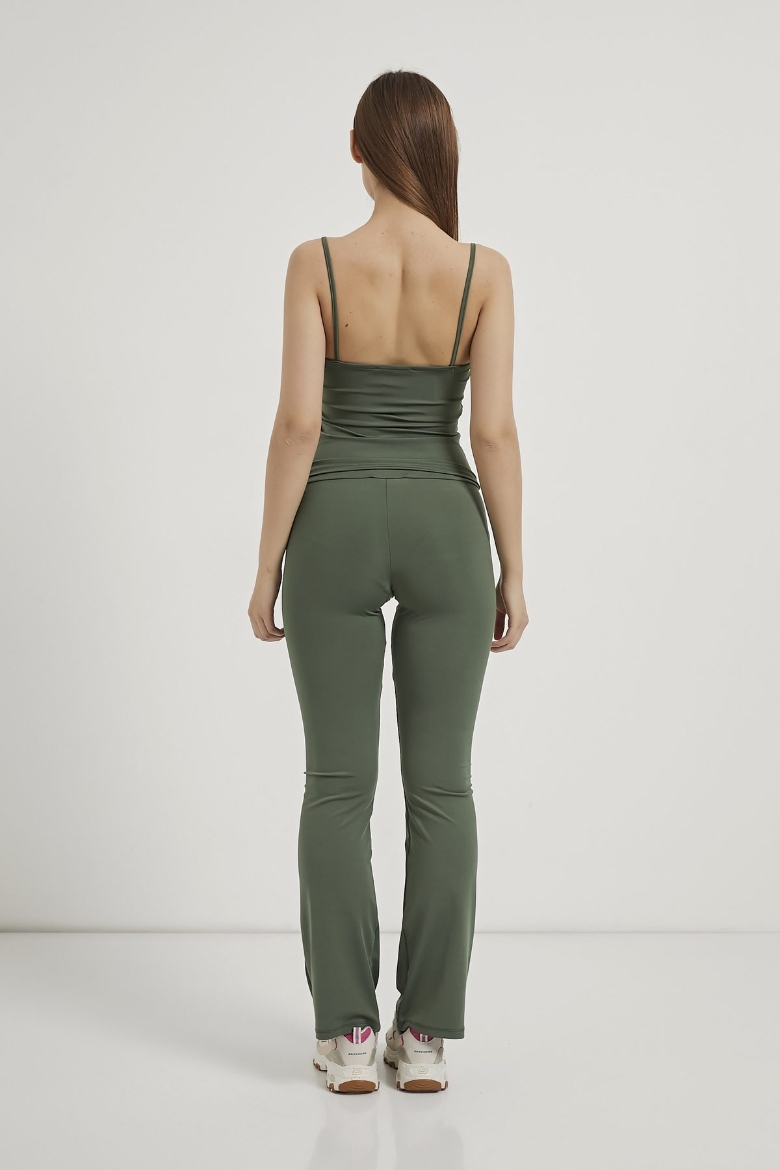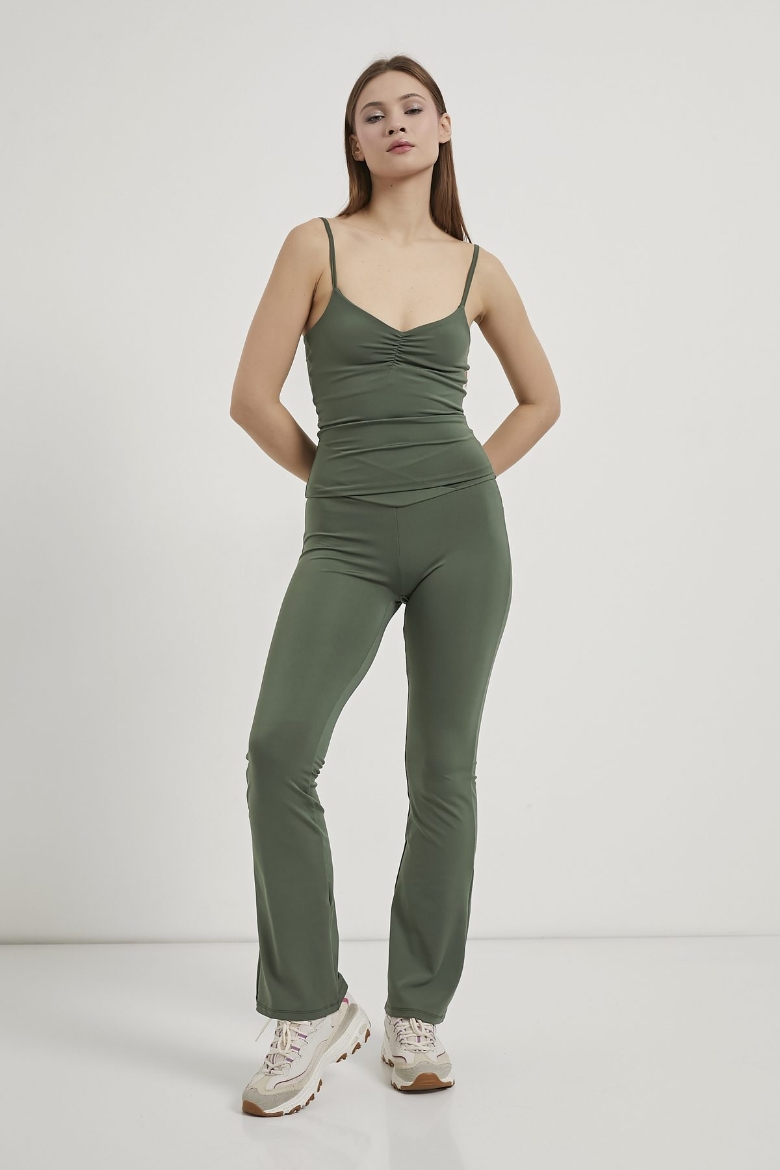 ARMALIFE 1636 BÜZGÜLÜ ESNEK ASKILI ATLET ÇAPRAZ DETAYLI İSPANYOL TAYT KADIN TAKIM