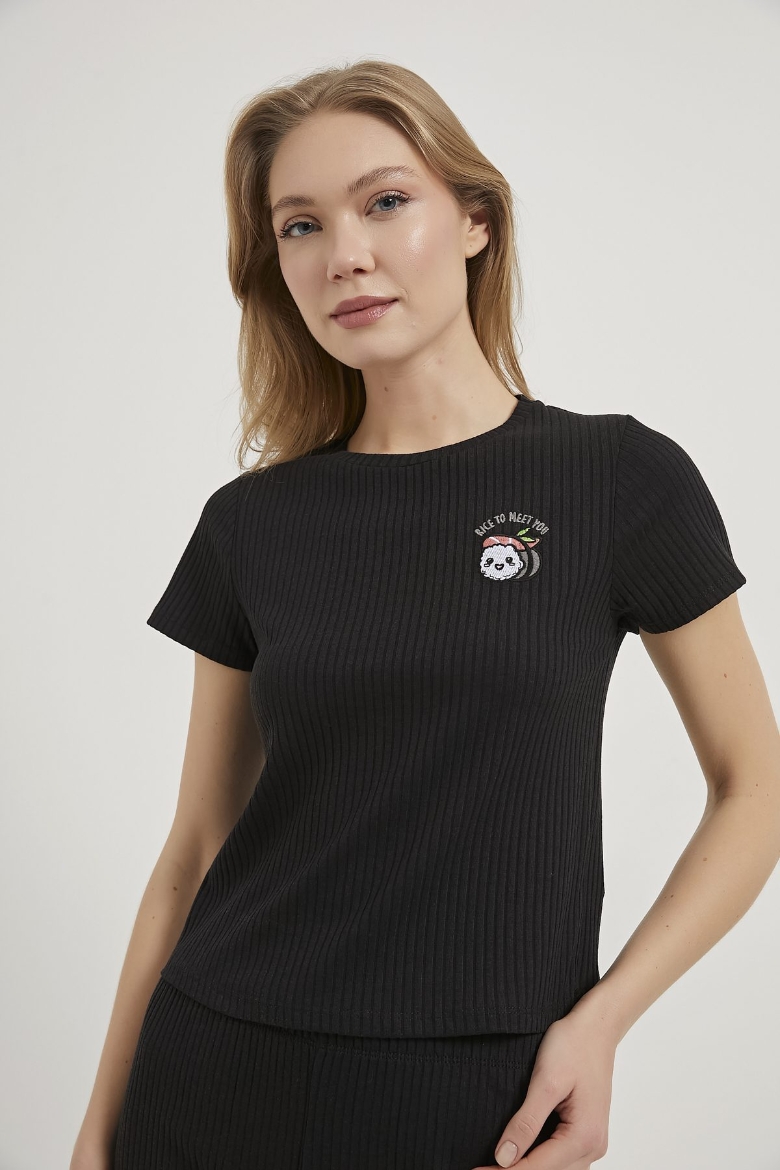 ARMALIFE 1638 NAKIŞLI KAŞKORSE ŞORT T-SHIRT KADIN PİJAMA TAKIM
