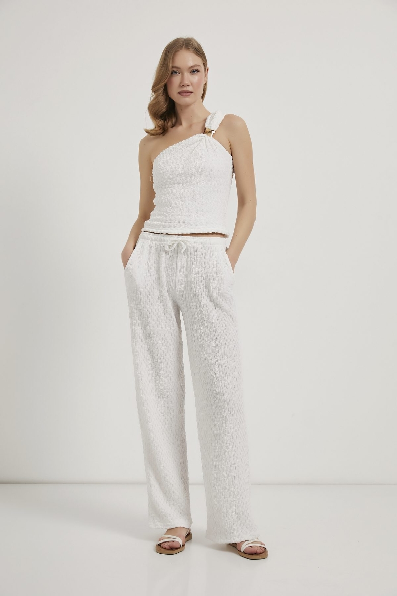 ARMALIFE 1641 AKSESUAR DETAYLI TEK OMUZ DOKULU ESNEK KADIN BLUZ