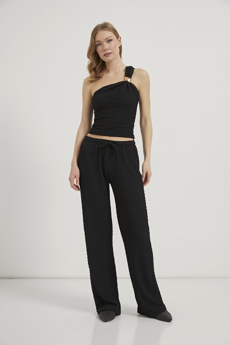ARMALIFE 1641 AKSESUAR DETAYLI TEK OMUZ DOKULU ESNEK KADIN BLUZ