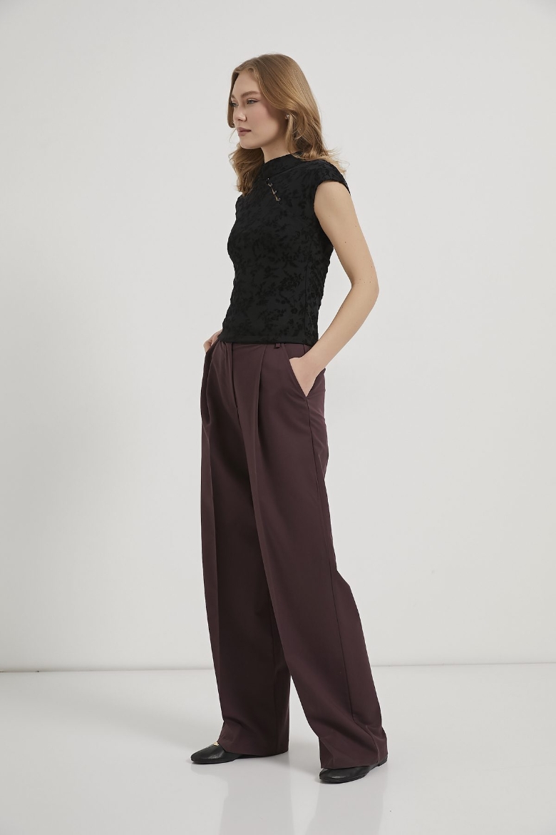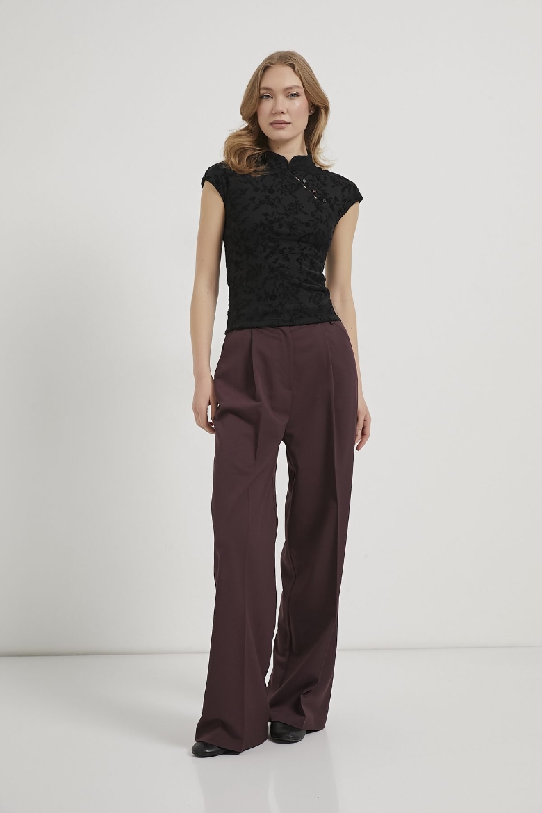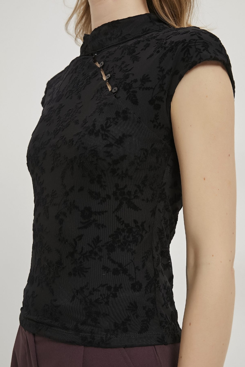 ARMALIFE 1702 DİK YAKA DÜĞME DETAYLI FLOK BASKILI KADIN BLUZ